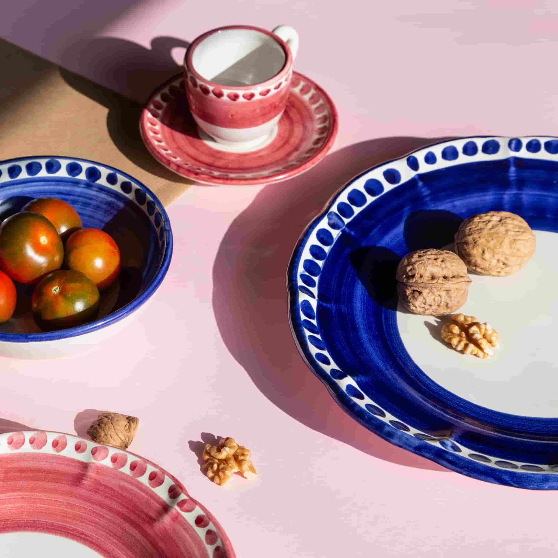 The artisanal ceramic tableware set VIETRI - I COLORATI features handmade coffee cups, small plates, soup plates, dinner plates, fruit plates, round and oval serving plates, bowls, and salad bowls, all crafted with traditional hand-painted techniques. Explore the complete Vietri Collection for elegant, artisanal tableware, ideal for enhancing any home or restaurant setting.
