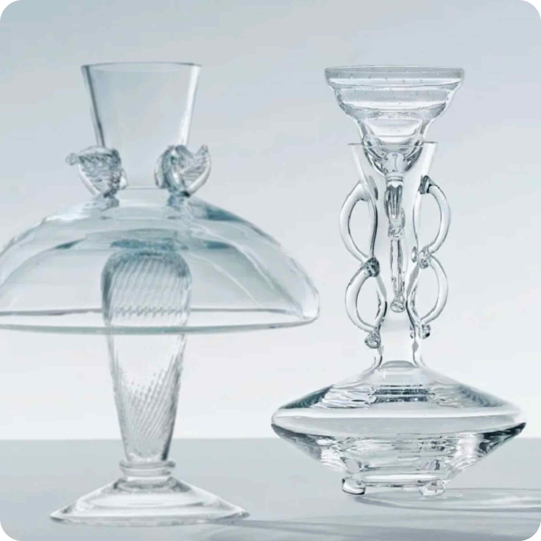Die Glasserie-Kollektion von Sipek ist ein Kunstwerk. Jede mundgeblasene Glasarbeit ist einzigartig: Jede hat ihre eigene Verzierung und Farbe und kann leicht vom abgebildeten Produkt abweichen. Gefertigt aus zartem, klarem mundgeblasenem Glas, ist sie perfekt für jede moderne Tischdekoration.
