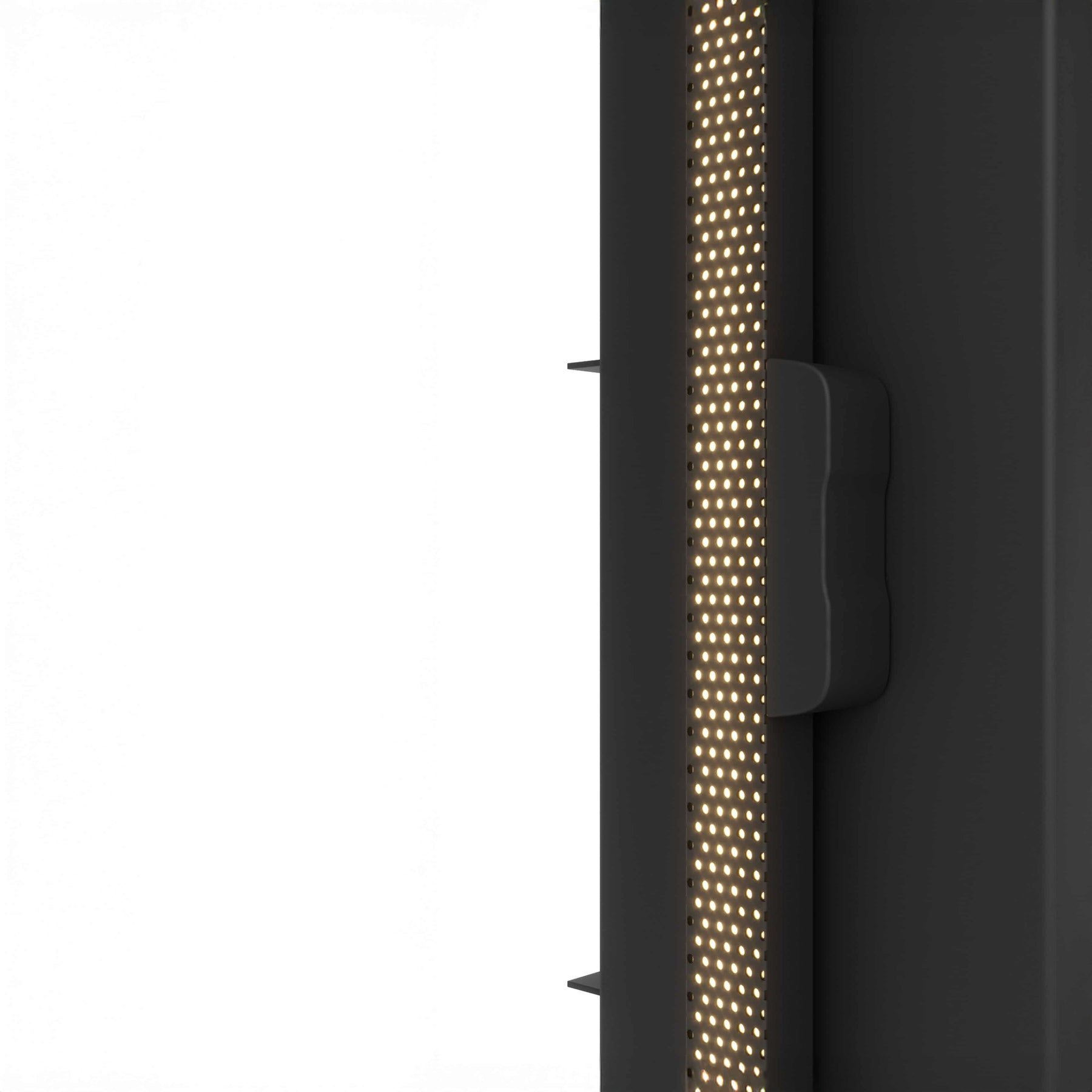 Disponible en tres tamaños y en negro o blanco para combinar con su estantería Sapiens, esta lámpara metálica microperforada se adhiere fácilmente de forma magnética a cualquier superficie metálica, pared o elemento de mobiliario para añadir iluminación de acento elegante y retroiluminación.