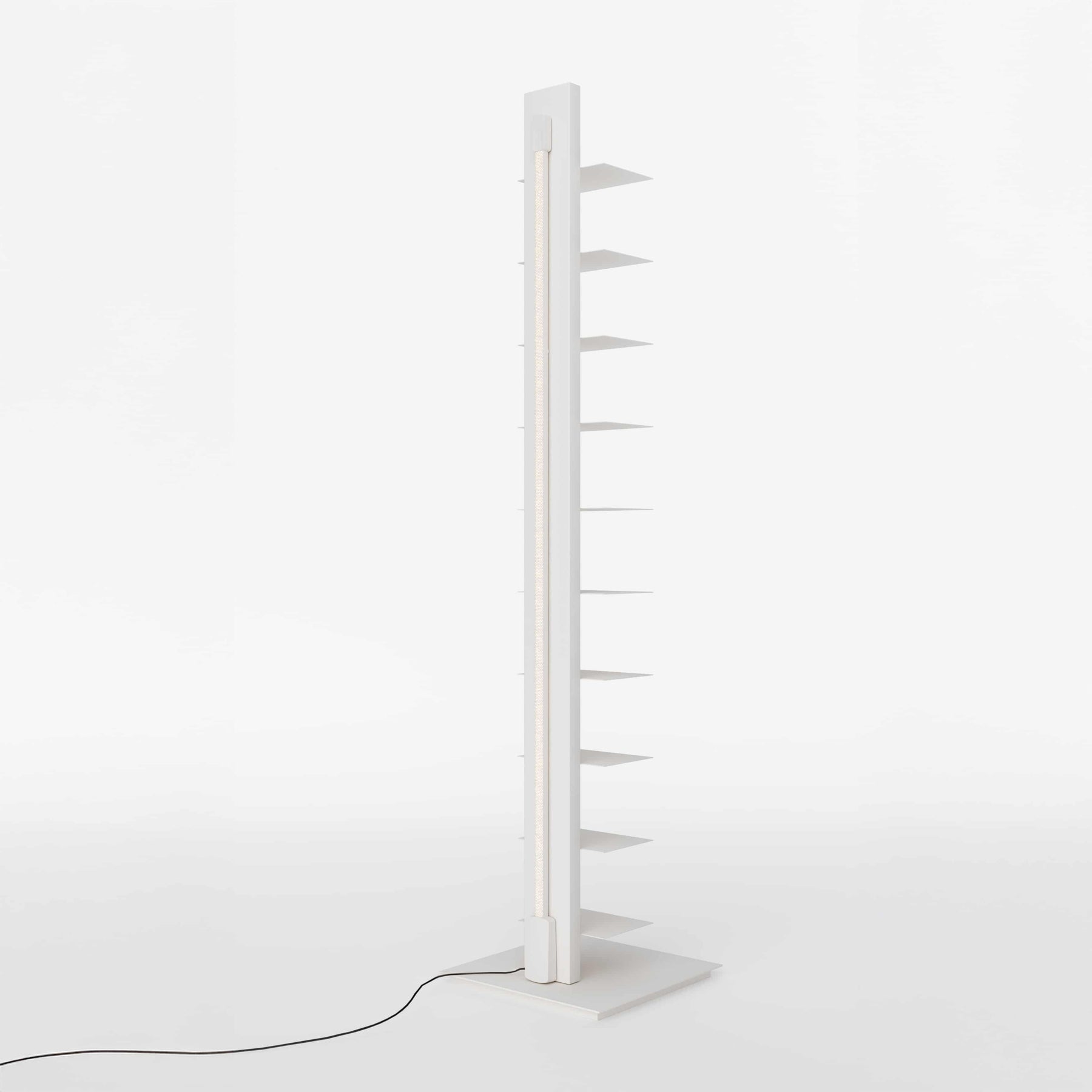 Lámpara LED regulable LUX de BBB Italia fue diseñada por Edoardo Radice para la estantería metálica tower bookcase Sapiens.