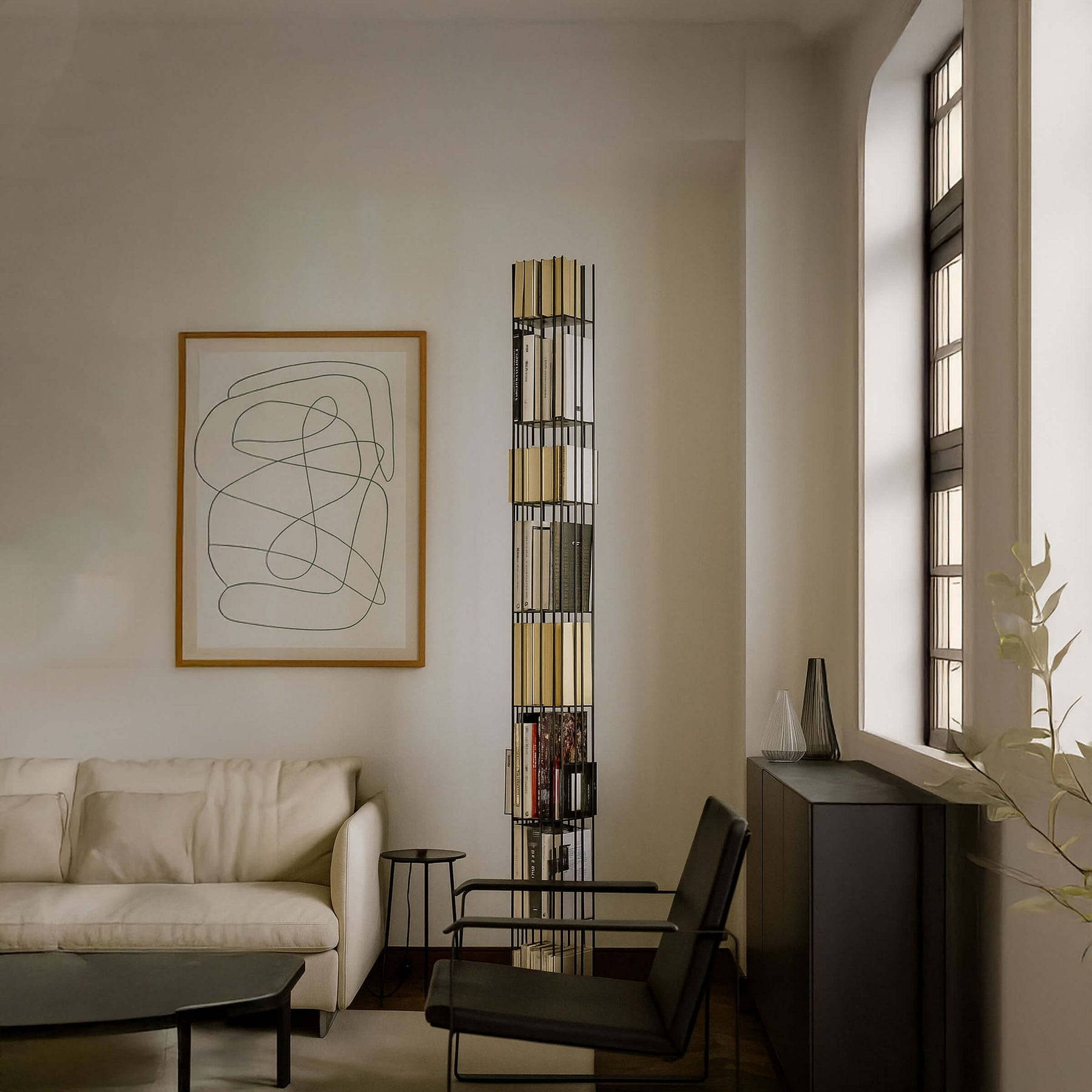 Personaliza tu estantería combinando la Torre Metrica con la estantería Metrica.