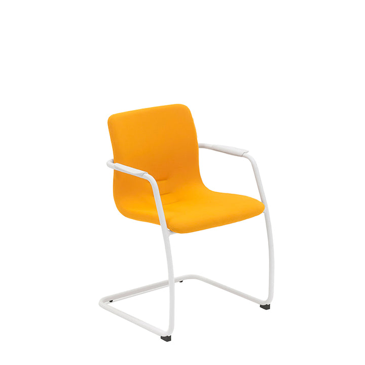 La silla cantiléver acolchada para visitantes QUEEN, diseñada por Viganò, está fabricada en Italia.