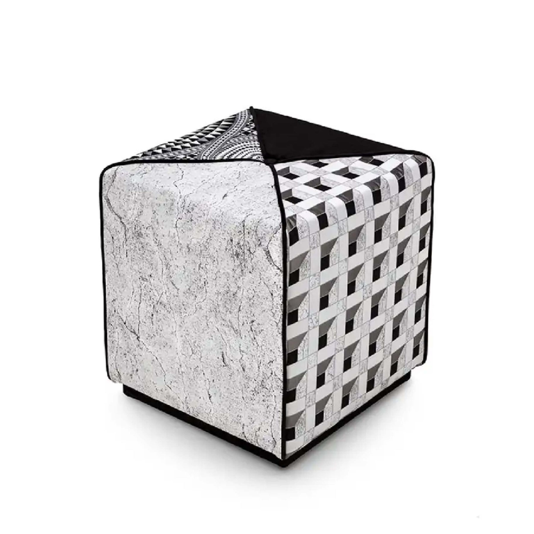 El pouf CHAMALEON de Sicis, fabricado en Italia, cuenta con una estructura de contrachapado acolchada con espuma de poliuretano.
