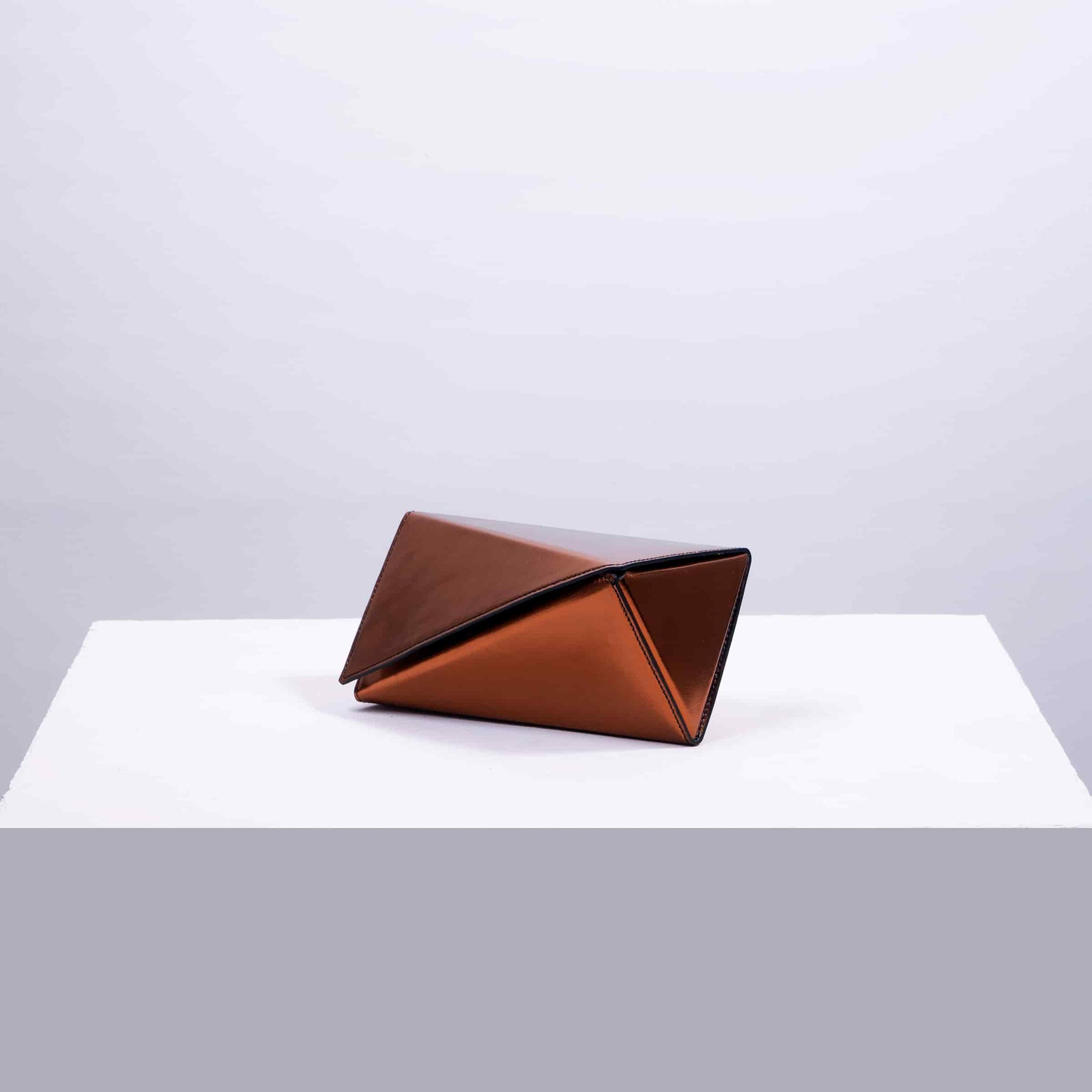 La pochette en cuir LUCE de MARCO Atelier a été fabriquée à la main en Italie, symbolisant la lumière à travers sa forme sculpturale.