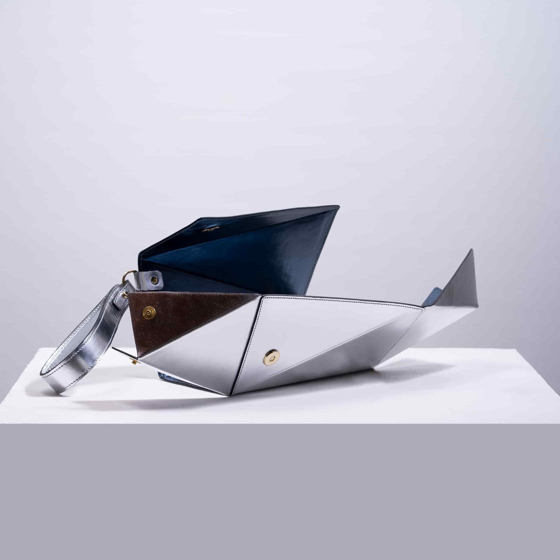Elle présente une forme solide mais pliable, entièrement réalisée par Marco dans son atelier en cuir de veau métallisé et quincaillerie en laiton poli. La pochette comprend une sangle de main amovible et une doublure intérieure en cuir. En ces temps incertains marqués par la violence et la destruction, beaucoup cherchent à se reconnecter avec la nature et nos racines. Cette pièce incarne l'eau, la lumière et la terre à travers sa forme et son savoir-faire.