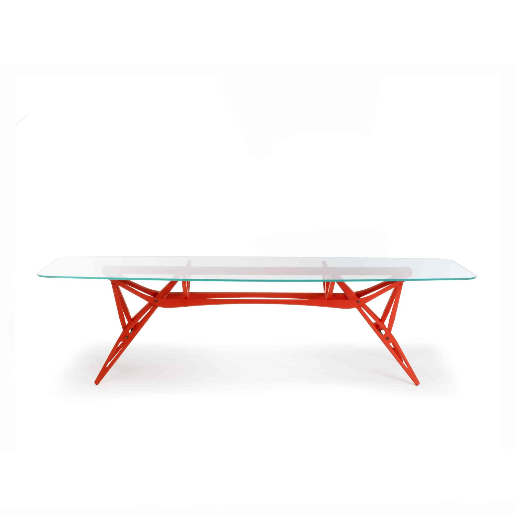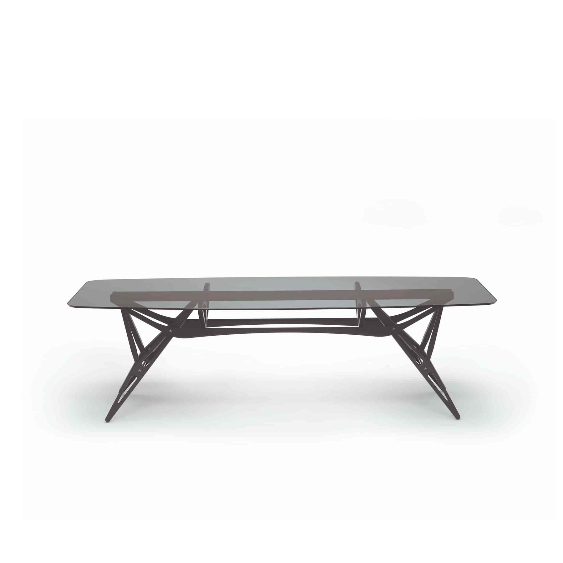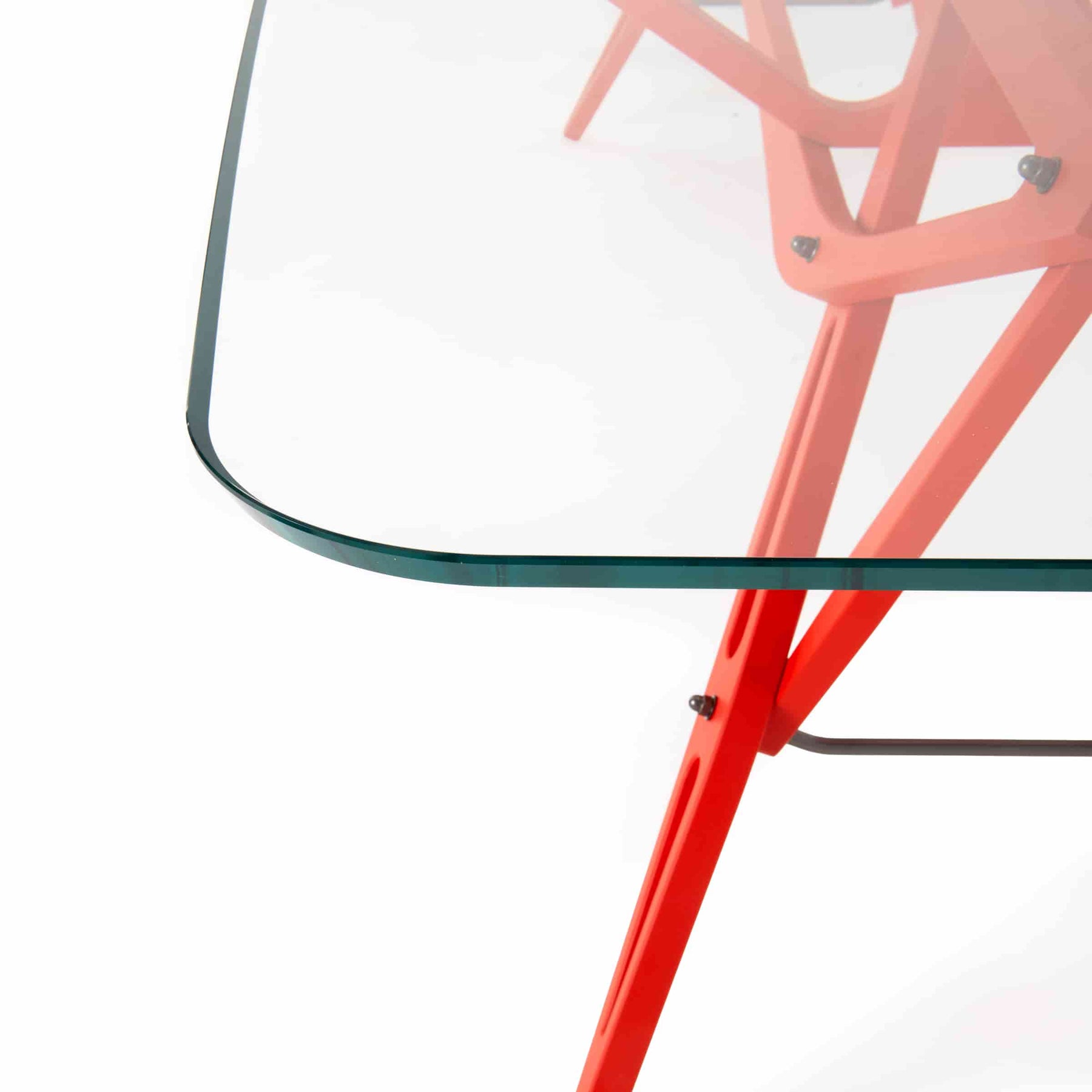 Parfait pour les intérieurs modernes, cette table polyvalente supporte diverses options de plateaux en verre. Plusieurs variations de ce concept de table existent, y compris un design personnalisé créé pour Società Reale Mutua Assicurazioni.