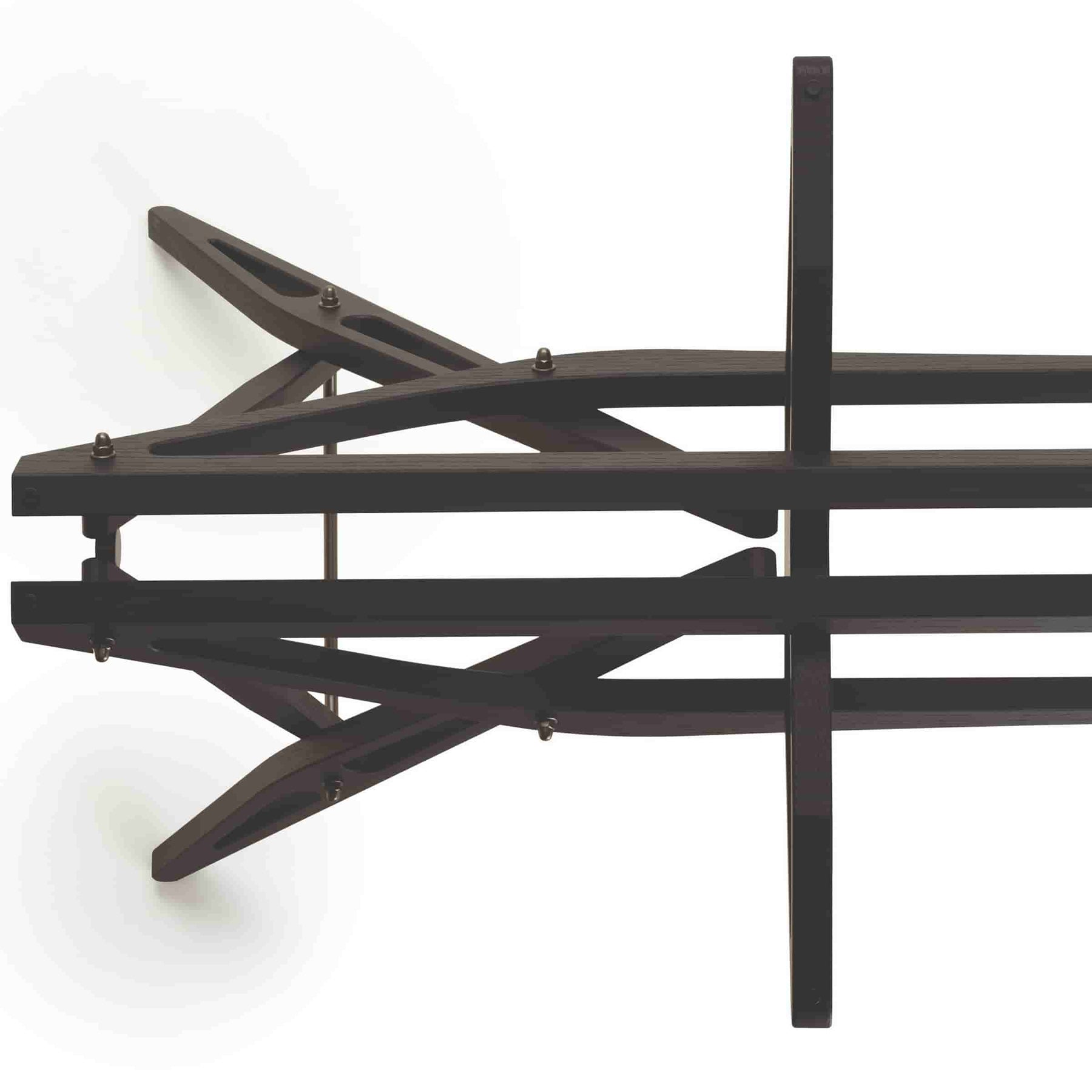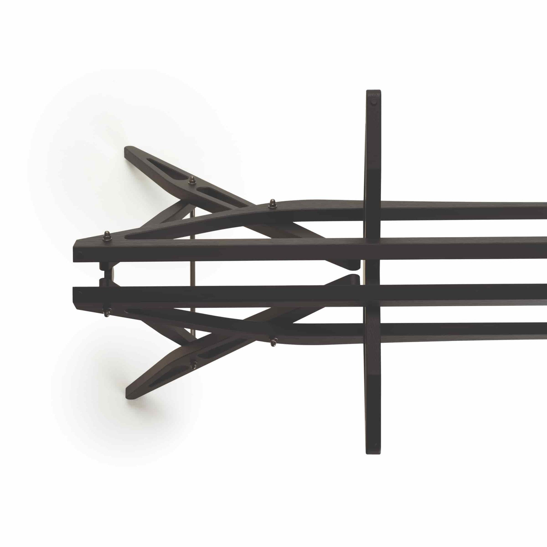 Ce design présente une structure en bois organique, solide et légère, inspirée par une aile d'avion, mettant en avant des techniques de construction innovantes visibles dans le support chevalet et la conception des joints.