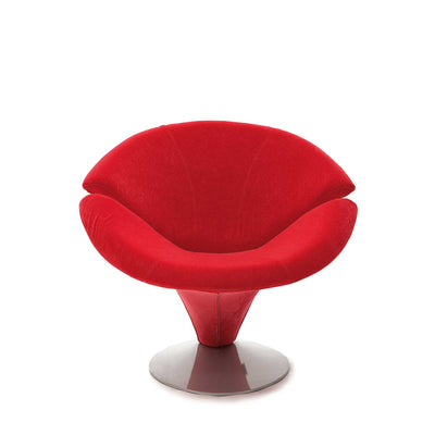 Cette chaise élégante et légère, rappelant une fleur, possède une structure interne en acier, un rembourrage en mousse de polyuréthane et une base en acier peint en argent. La housse est amovible pour un entretien facile.