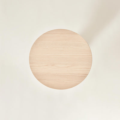 Cette table basse combine une base rythmée et un plateau circulaire monolithique pour un contraste saisissant. L'élément horizontal semble équilibré sur la jonction sphérique de la fondation verticale, créant un effet visuel captivant. Fabriquée en bois de frêne massif, la table met en valeur une forte qualité de matériau, avec des moulures apparentes ajoutant du charme.