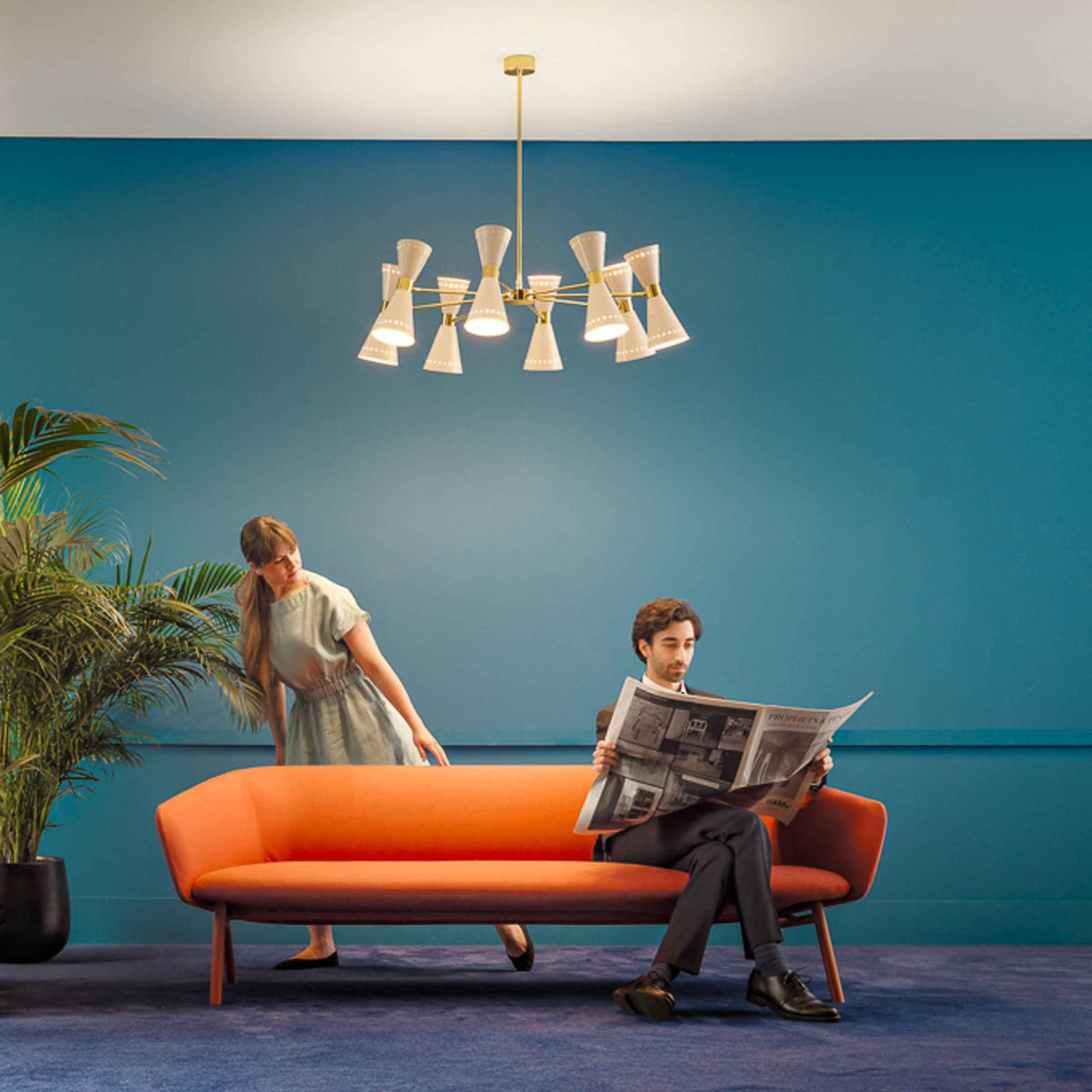 Une pièce emblématique du design des années 1950, le lustre en laiton MEGAFONO a été conçu par Stilnovo et fabriqué en Italie.
