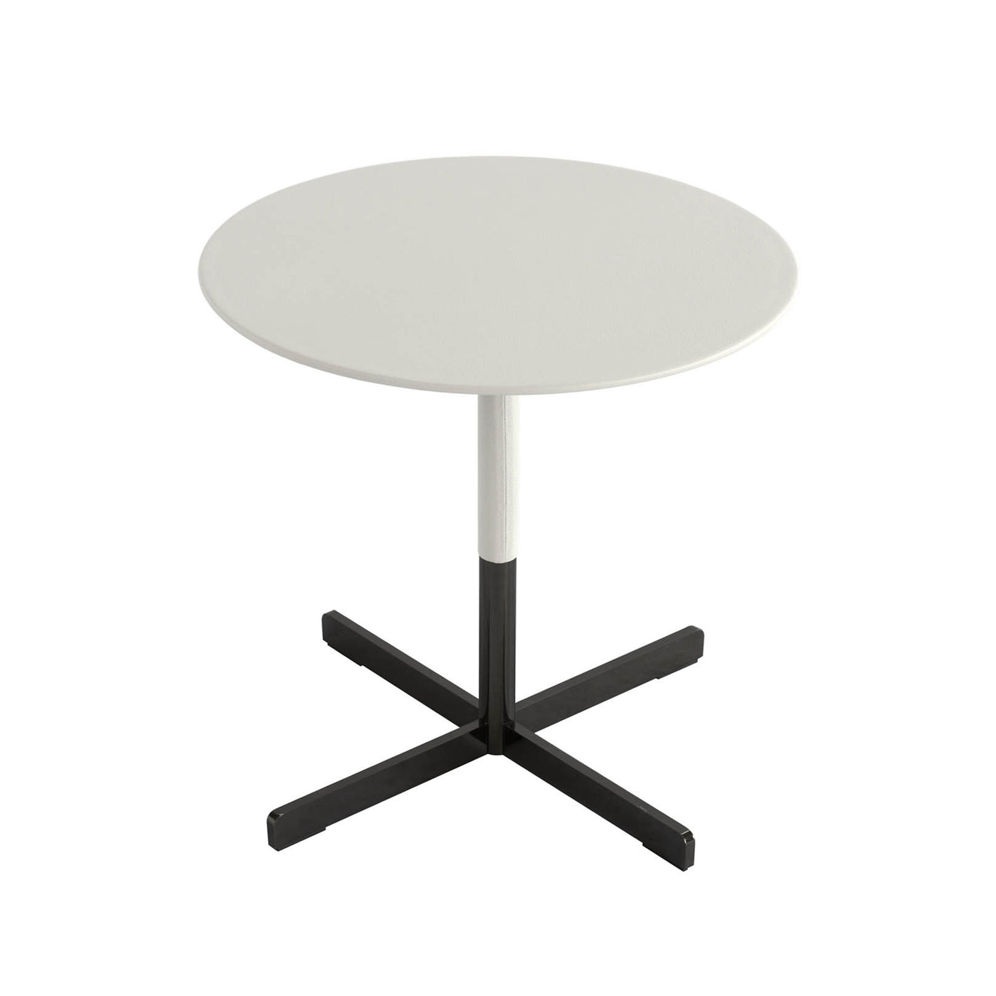 Table d'appoint ou table de salon parfaite pour les salons contemporains, cette table élégante présente un plateau recouvert de cuir Poltrona Frau Colorsphere® et une base et des pieds en acier avec une finition canon de fusil.