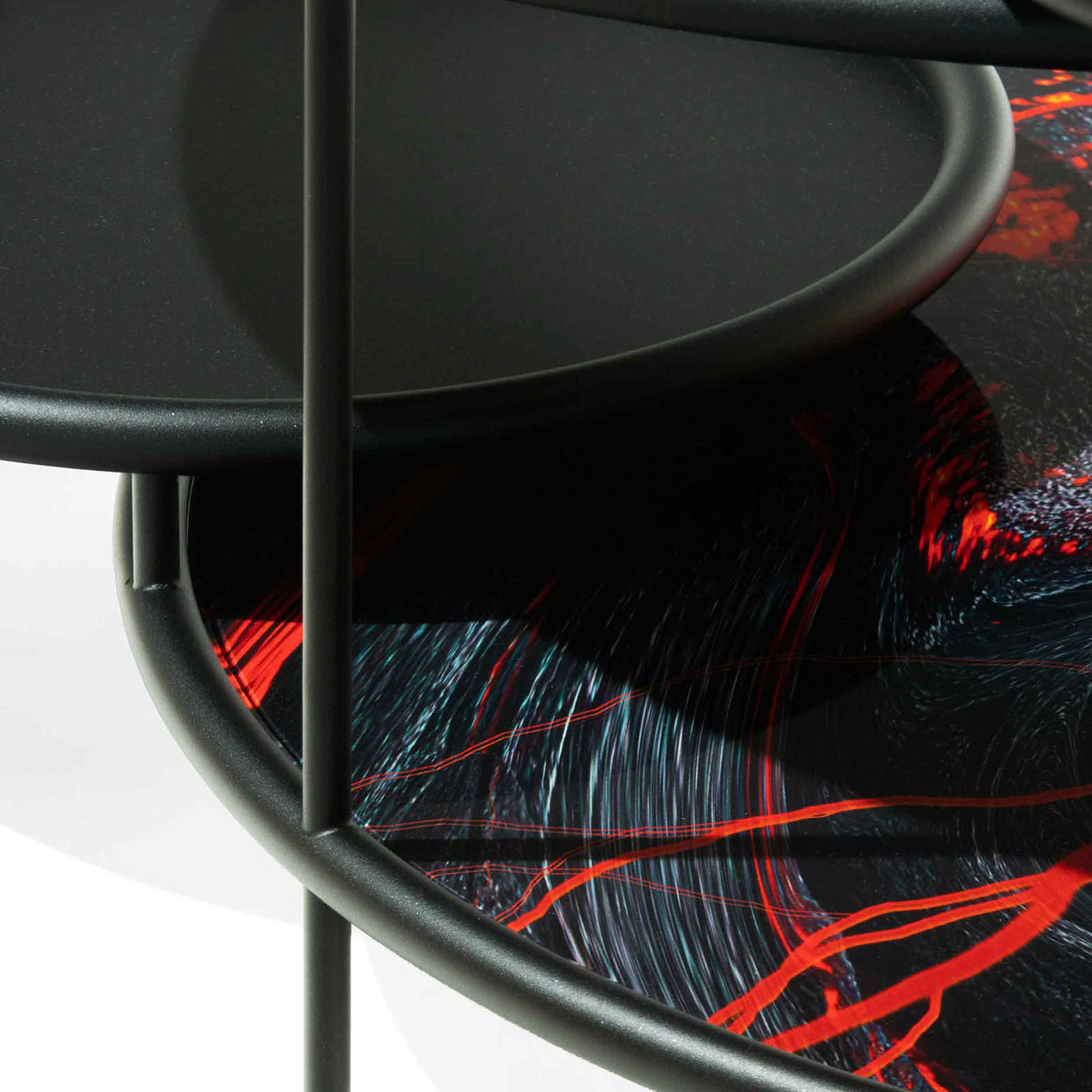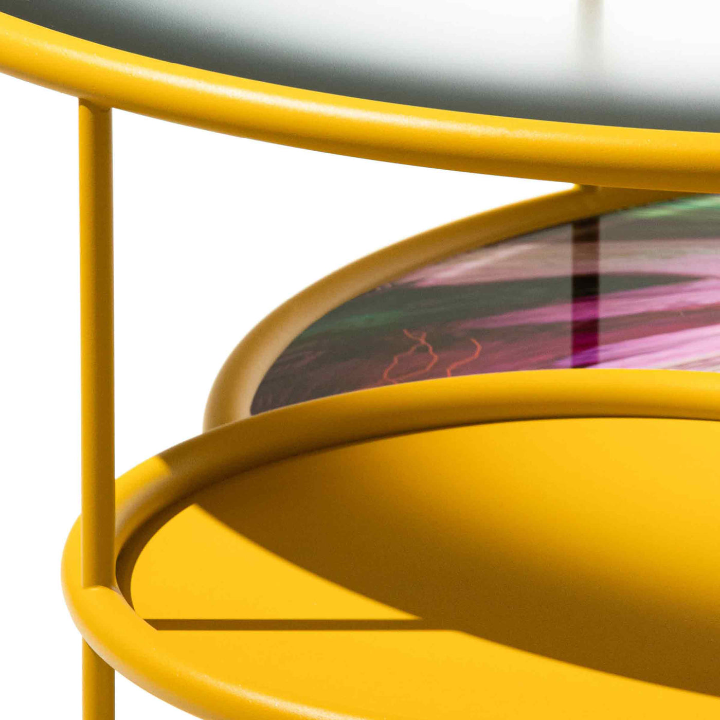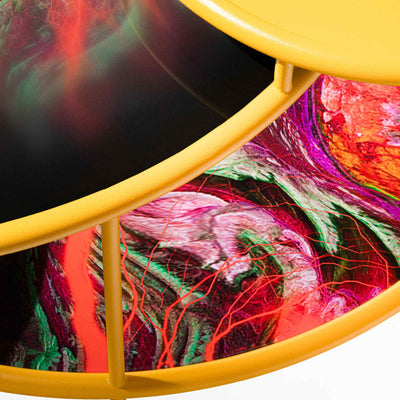 Cette belle table d'intérieur, avec quatre plateaux ronds superposés, apportera couleur et style à n'importe quelle pièce et est disponible en quatre combinaisons de couleurs.