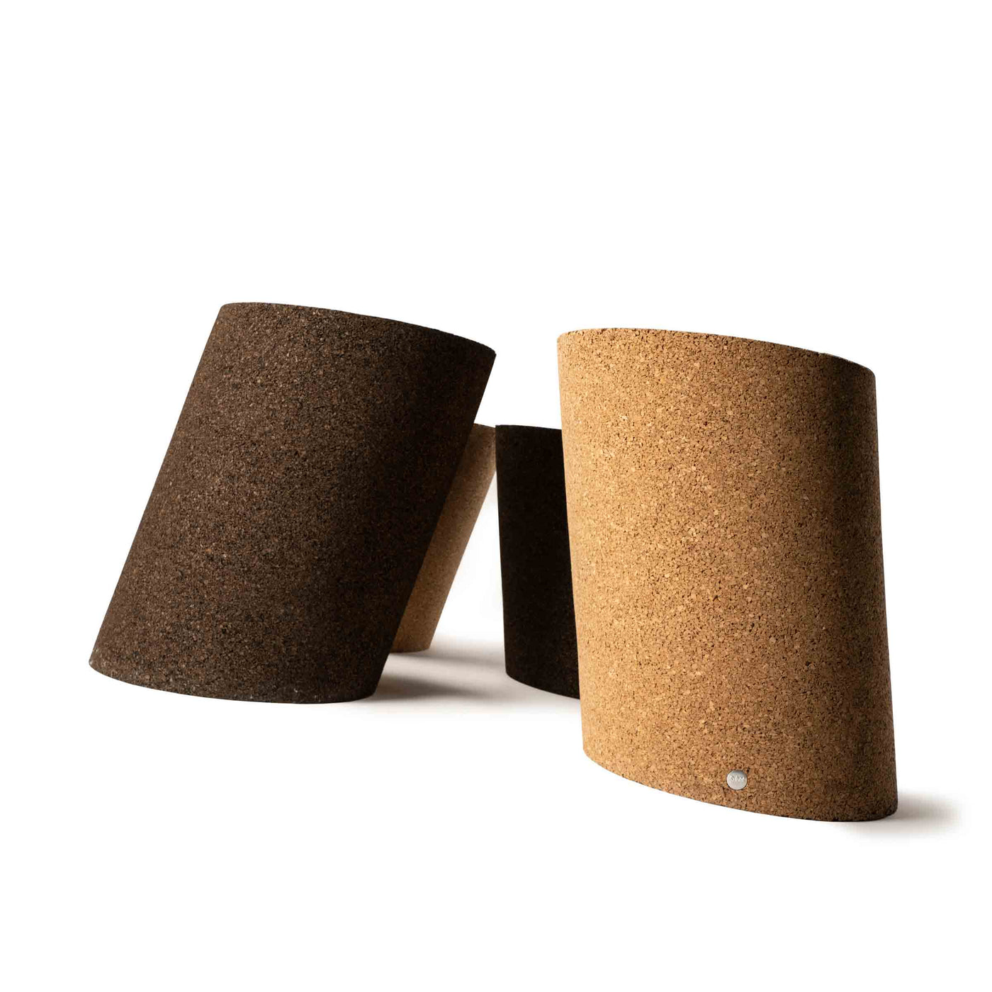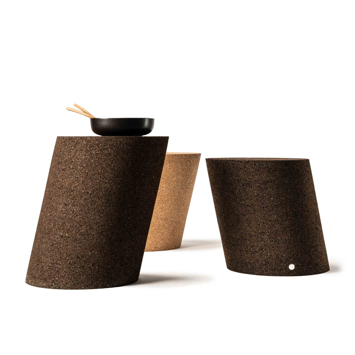 Faisant partie du projet de recyclage d'Amorim Cork, ce tabouret en liège recyclé avec une base en métal a été produit grâce à 1930 bouchons en liège et des processus durables.
