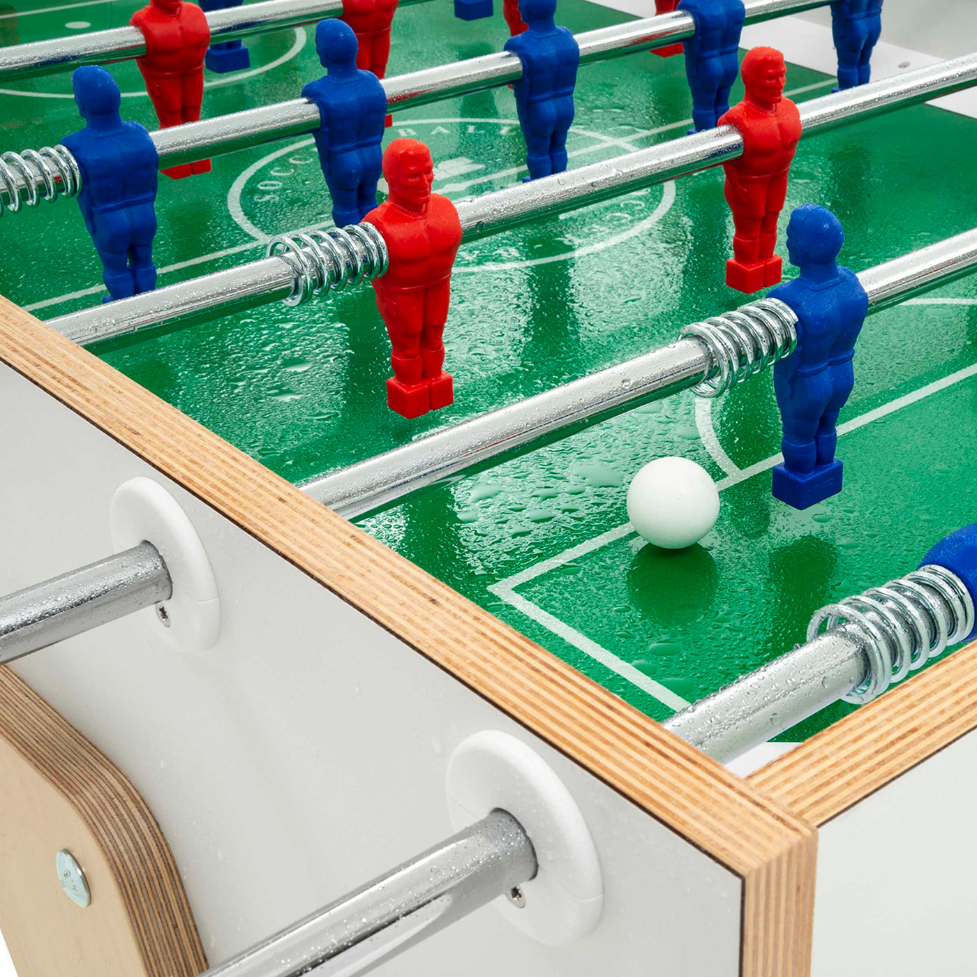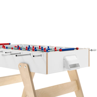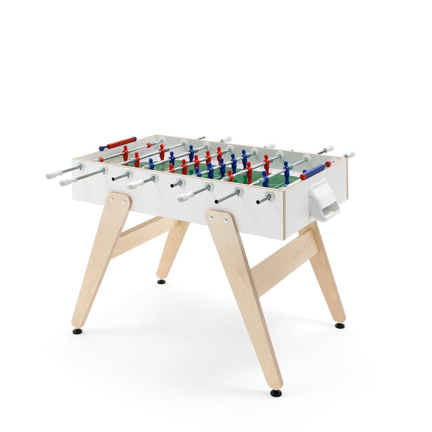 La meilleure table de baby-foot design avec des pieds en contreplaqué de bouleau, trois options de couleur, et un design qui s'harmonise avec la nature, offrant durabilité à long terme et esthétique intemporelle.