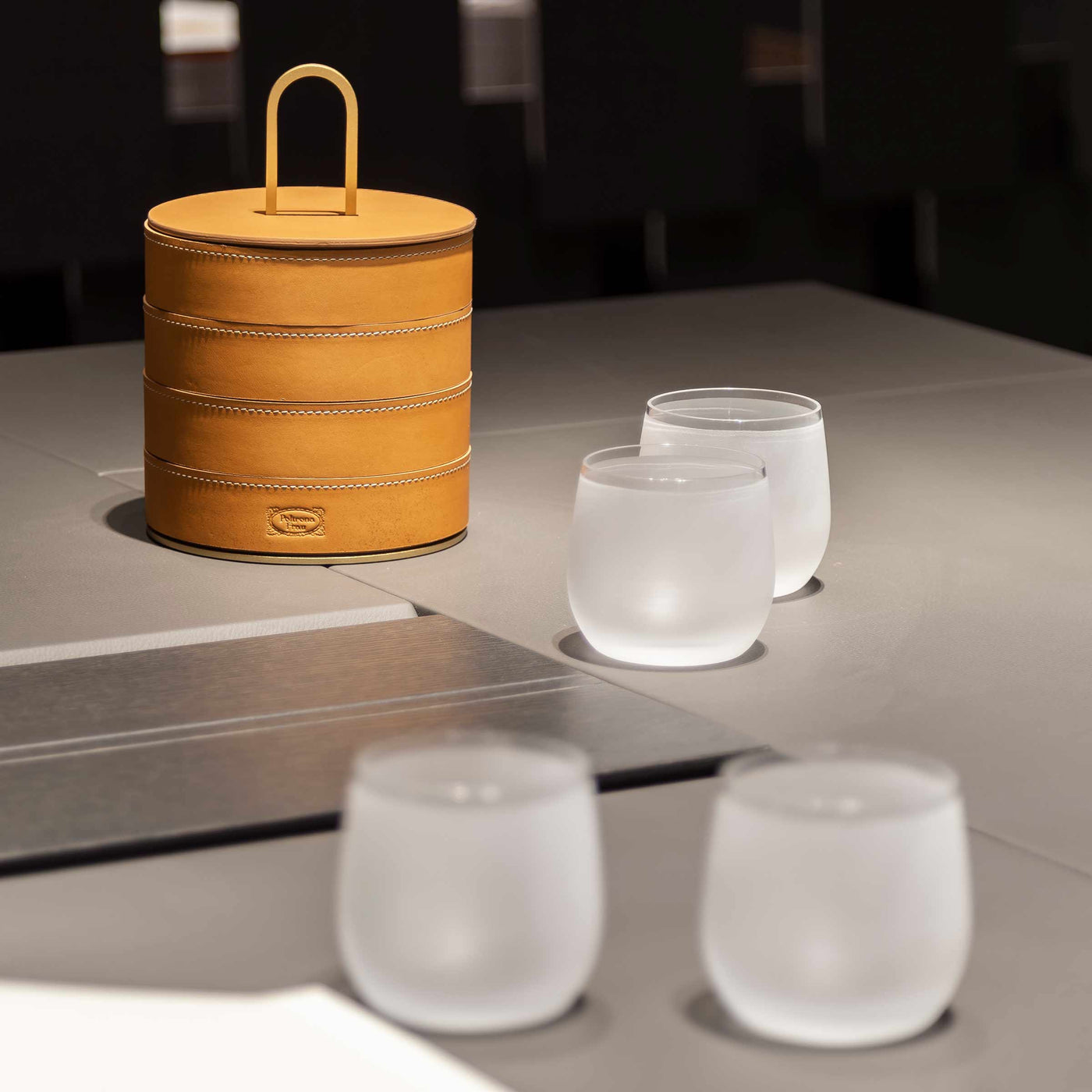 Le contenant en cuir ZHUANG a été conçu par Neri&Hu pour Poltrona Frau et a été fabriqué artisanalement en Italie.