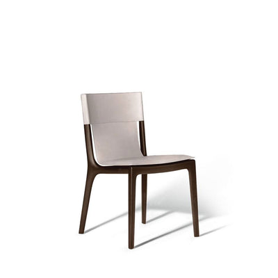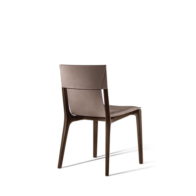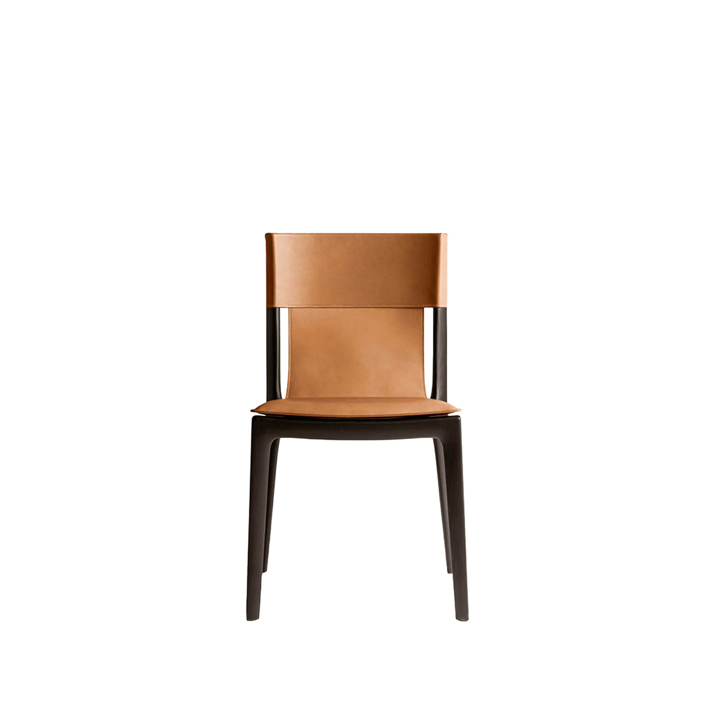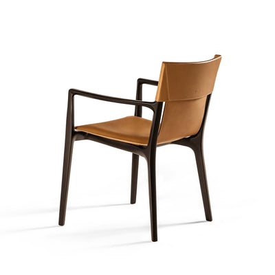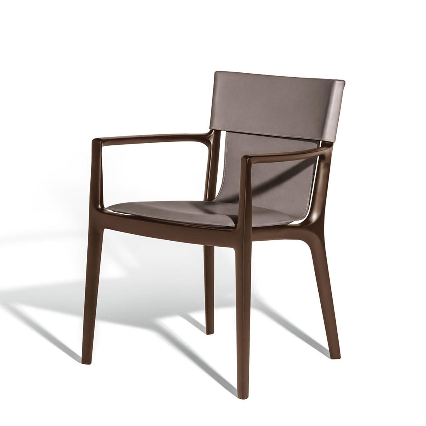 Parfaite pour les salles à manger contemporaines, les bureaux et le salon, cette chaise contemporaine élégante est une combinaison de deux matériaux luxueux : frêne teinté wengé et cuir Poltrona Frau Saddle Extra. Disponible avec ou sans accoudoirs et en marron, gris ou gris clair. Couture ton sur ton.