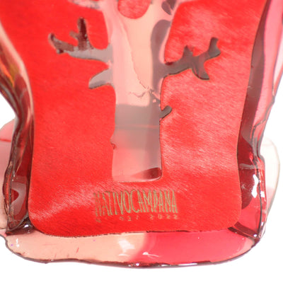 Le vase en résine douce et inserts en cuir CERRADO L est fabriqué à la main en Italie par Corsi Design dans le cadre de la collection NativoCampana conçue par Fernando et Humberto Campana en 2010.