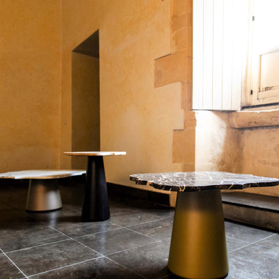 La table basse en marbre BOROMEO a été conçue par Toti Spataro pour Kimano et fabriquée en Italie.