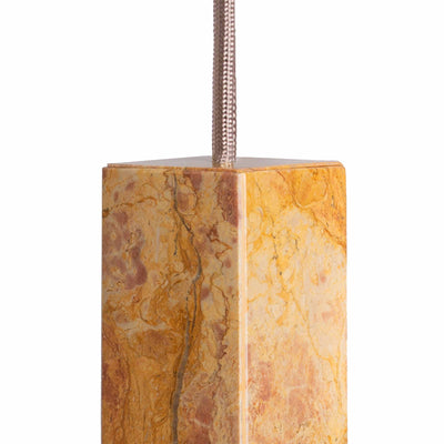 La beauté intemporelle des marbres Royal Yellow, Green Alps, Rosso Collemandina, Calacatta se combine avec le laiton, la porcelaine et le cristal, faisant de cette lampe suspendue un choix idéal pour tout espace, y compris les salons, cuisines et salles à manger, ainsi que comme lampe de chevet suspendue.