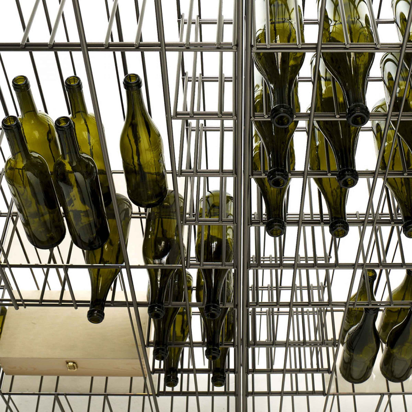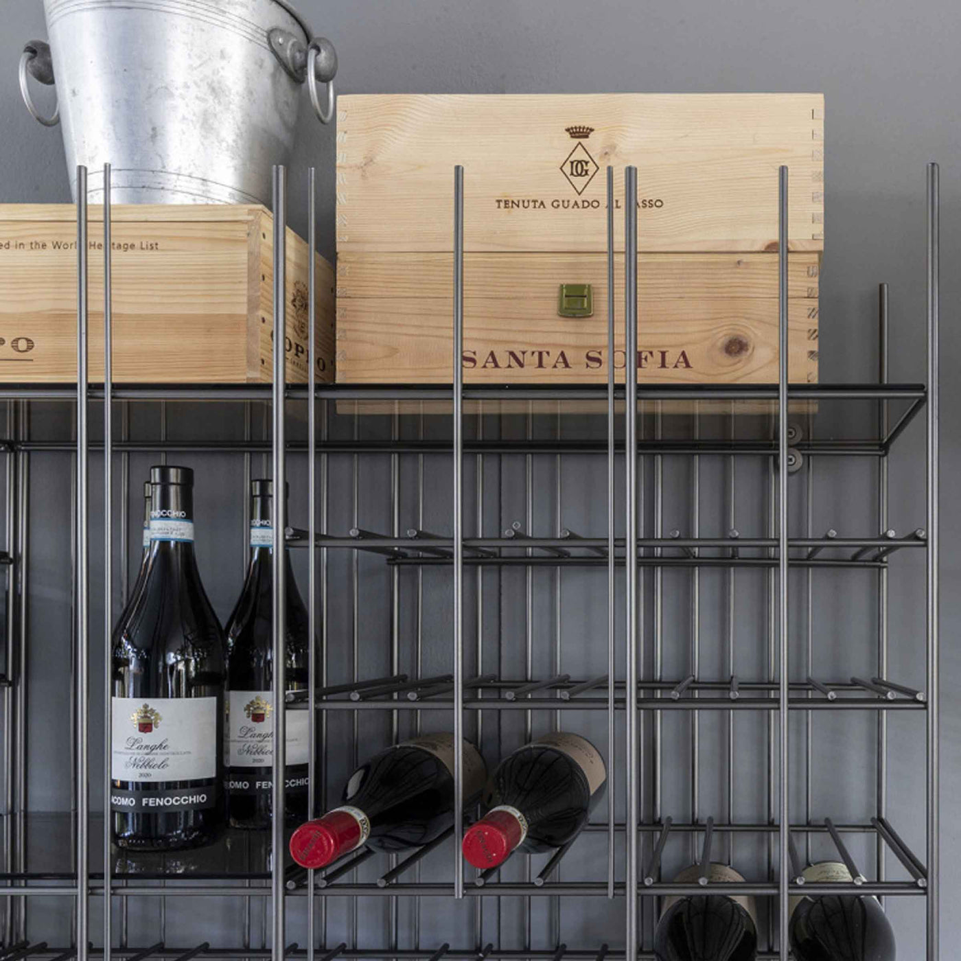 Le porte-bouteilles au sol en métal METRICA WINERY a été conçu par Ctrlzak Studio pour Mogg et fabriqué à la main en Italie.