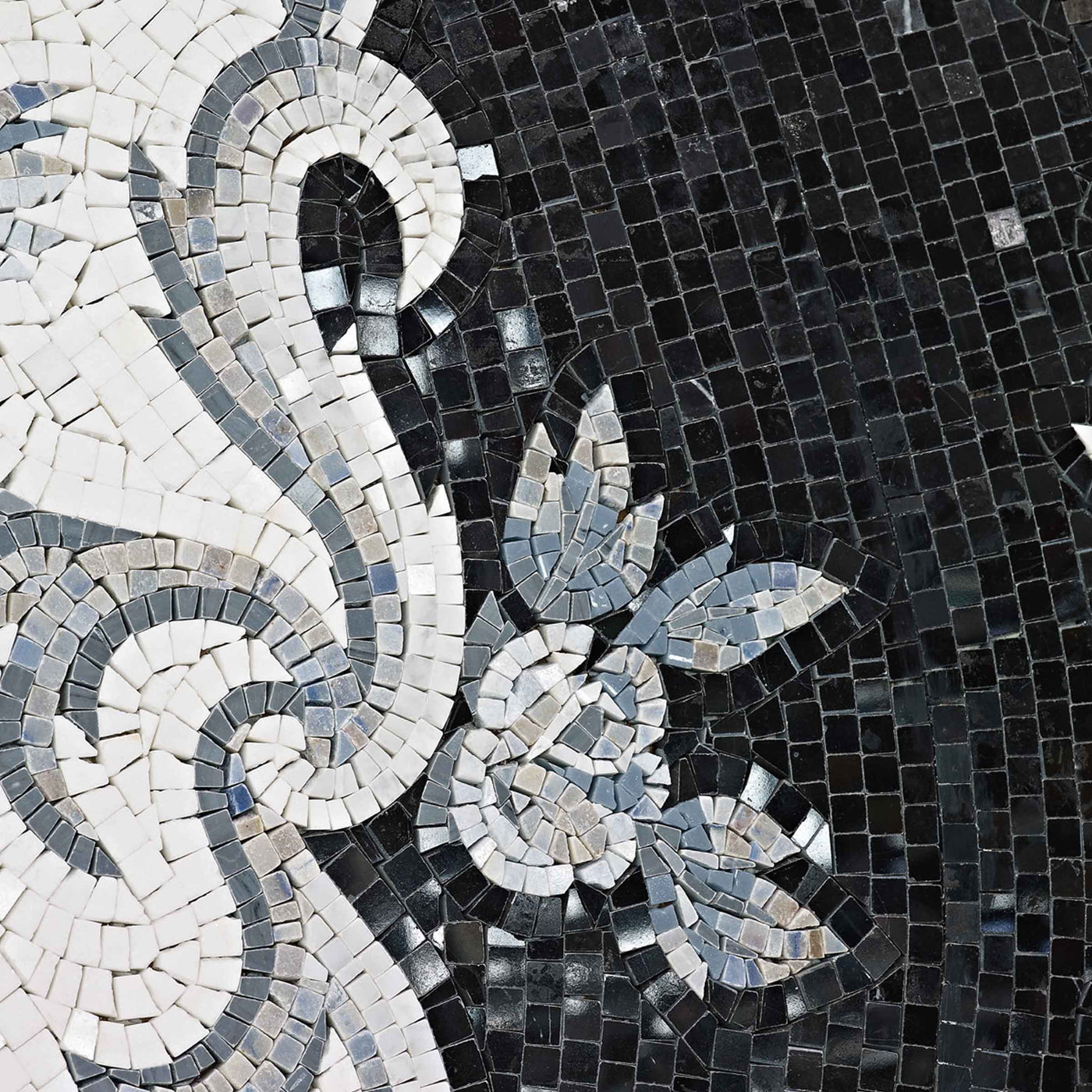Cette mosaïque fait partie de la collection The Mosaic Rugs de Sicis, qui sont des "tapis" faits de marbre, pierre et autres matériaux naturels décorés de motifs géométriques, floraux et figuratifs. Inspirés par les décorations romaines antiques, ils perpétuent la beauté de la tradition combinée aux procédés industriels modernes.