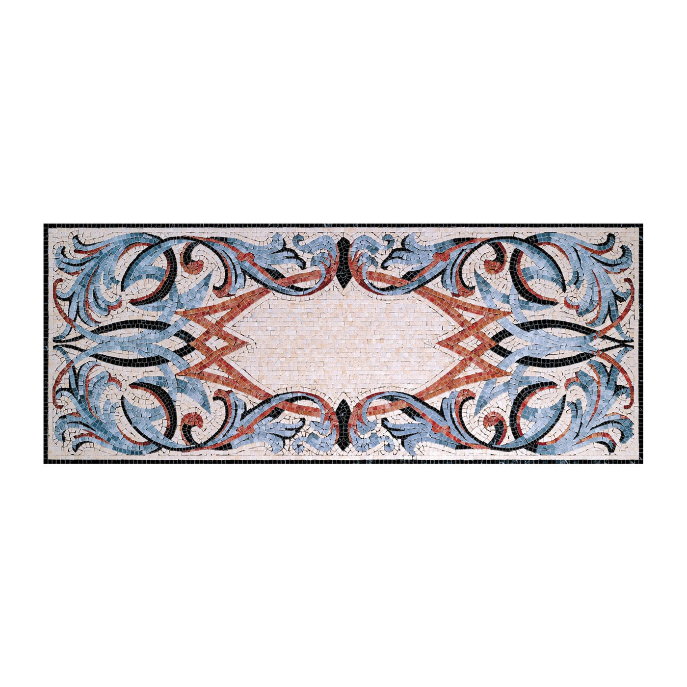 Cette mosaïque fait partie de la collection The Mosaic Rugs de Sicis, qui sont des "tapis" faits de marbre, pierre et autres matériaux naturels décorés de motifs géométriques, floraux et figuratifs. Inspirés par les décorations romaines antiques, ils perpétuent la beauté de la tradition combinée aux procédés industriels modernes.