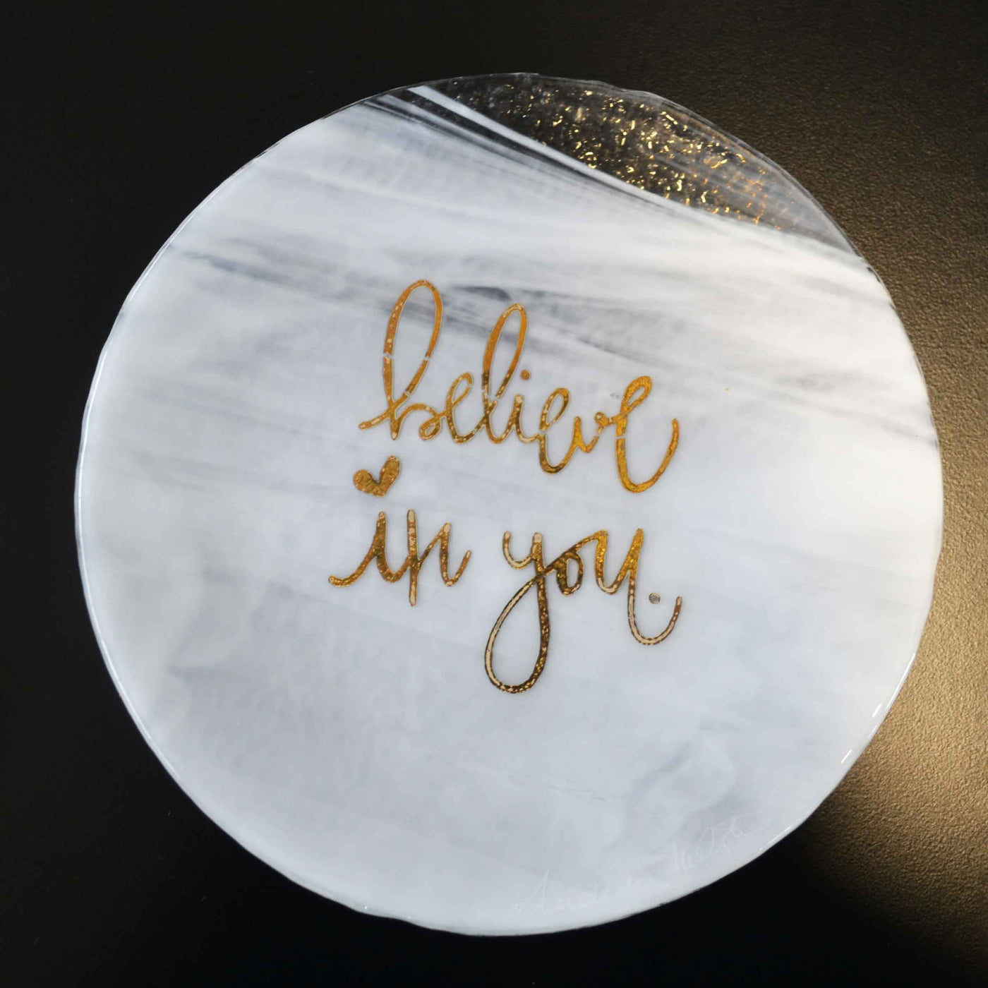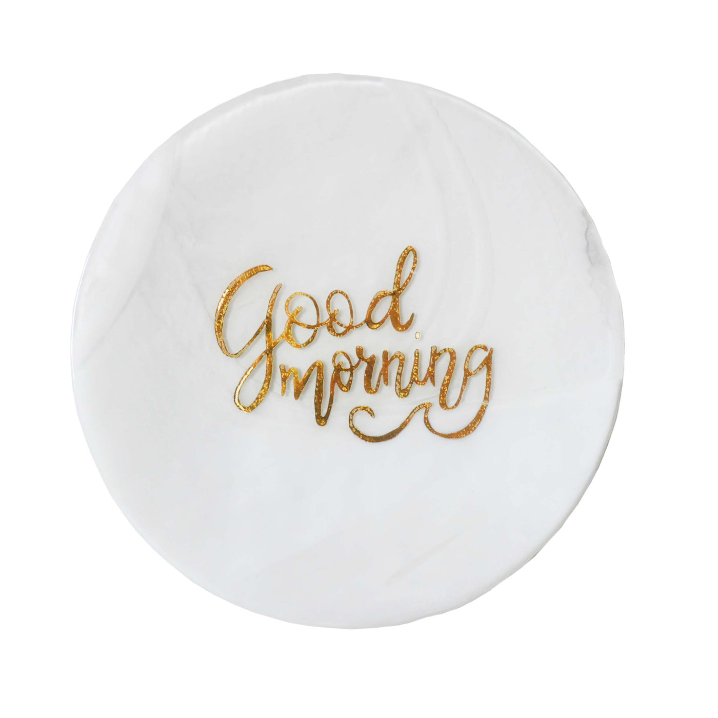 Ce joli petit plateau valet est l'espace parfait pour la monnaie ou les clés dans un couloir ou une entrée. Disponible en blanc, violet ou autres couleurs sur demande, ajoutez un message de jusqu'à 15 caractères écrit en or 24 carats. Chaque pièce est signée par l'artiste. Compatible lave-vaisselle.