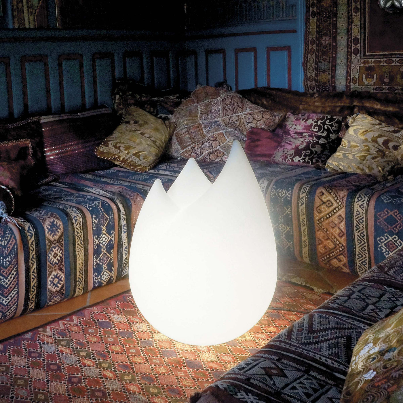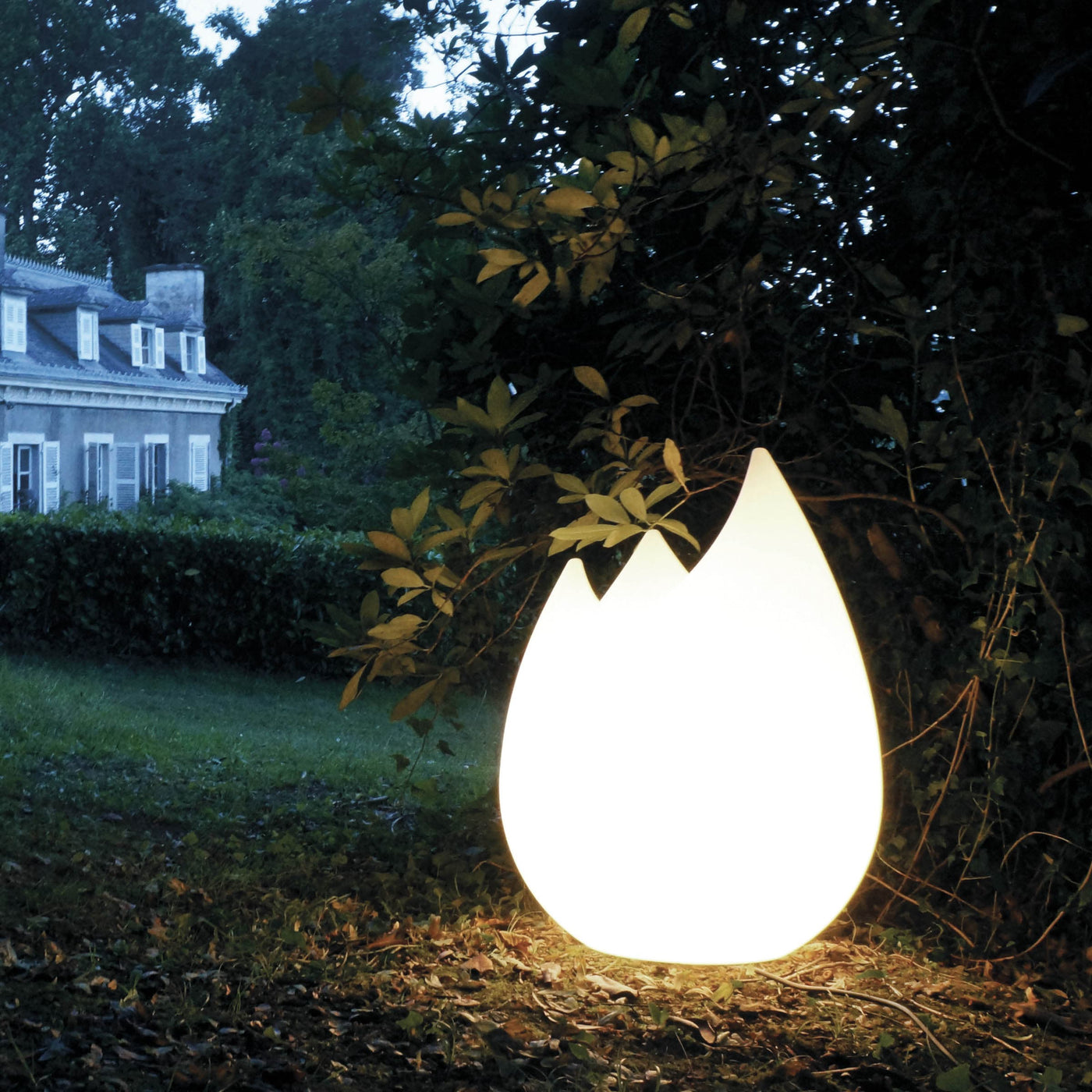 Cette lampe en forme de flamme évoque la connexion primordiale entre la lumière et le feu et illuminera terrasses, patios et jardins avec style.