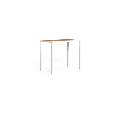 La table de bar extérieure élégante et empilable en bois et acier CASILDA a été conçue par Ramón Esteve pour Talenti et a été fabriquée à la main en Italie.