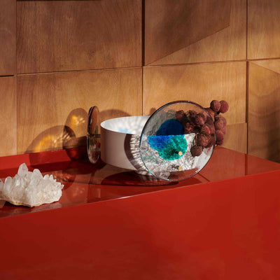 La designer anglaise Bethan Laura Wood interprète la synthèse entre l'art séculaire du travail du verre de Murano et le design contemporain avec un saladier et un vase cylindrique pour fleurs produits par Venini.