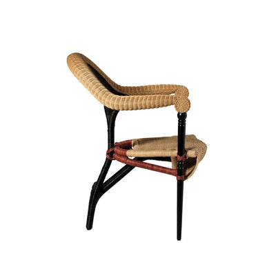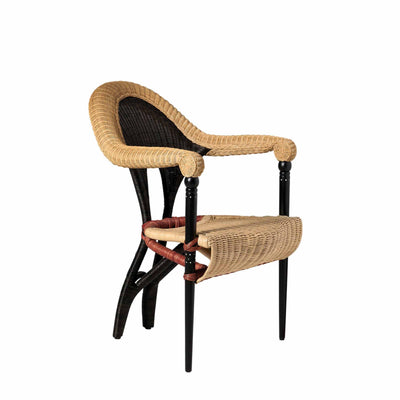 Cette chaise contemporaine présente une assise et un dossier en rotin pour un look intemporel, et des pieds avant en bois massif ébonisé.