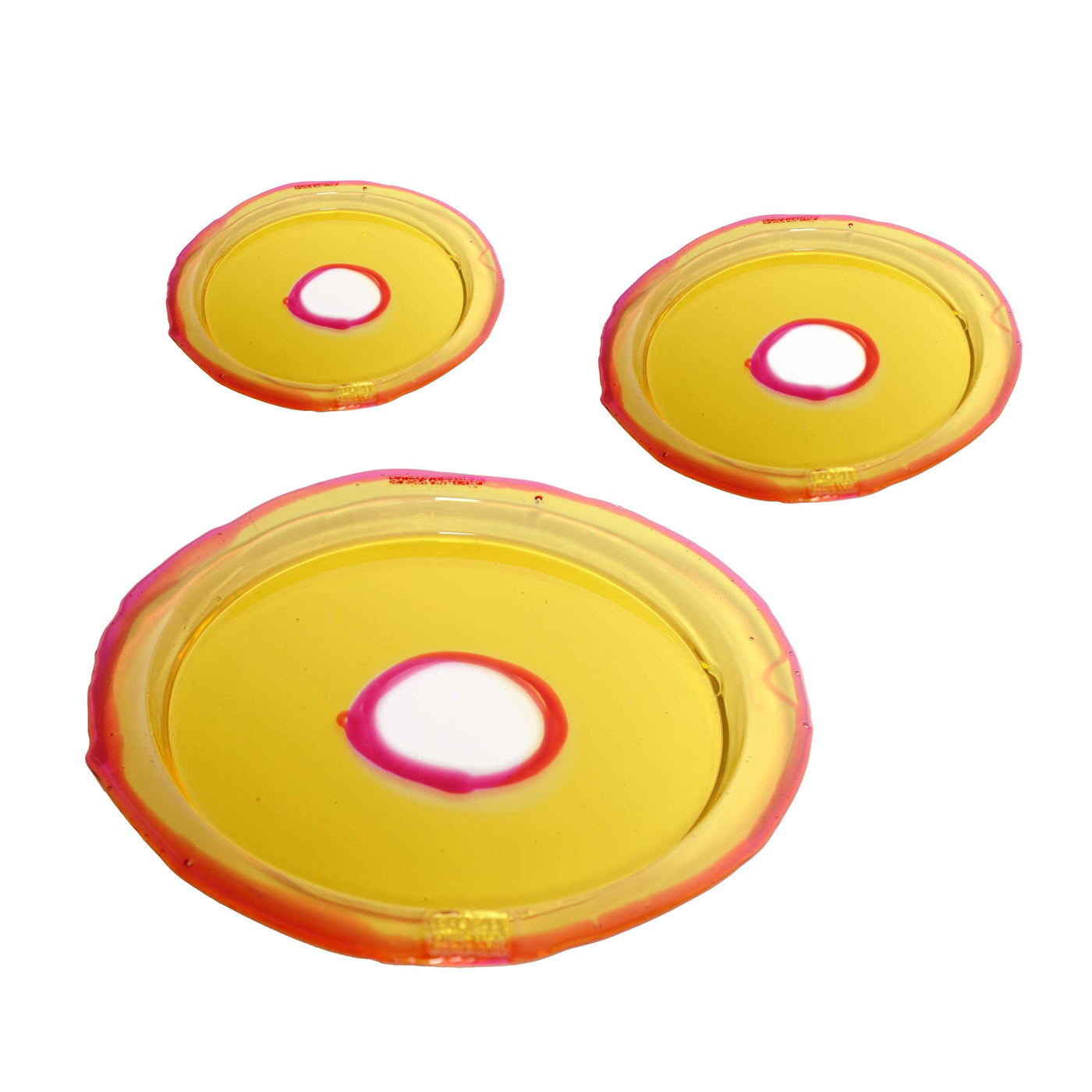 Plateau rond en résine TRY-TRAY jaune lot de trois par Gaetano Pesce pour Fish Design
