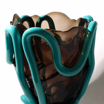 Vase en résine douce INDIAN SUMMER Fumé Clair et Turquoise Mat conçu par Gaetano Pesce en 1995 pour Fish Design et fabriqué en Italie.