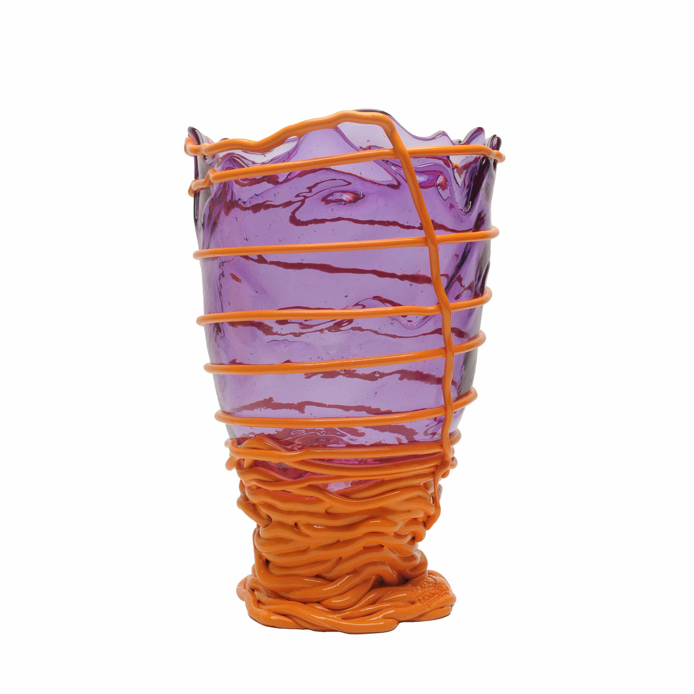 Le vase en résine POMPITU II Lilas clair et Citrouille mate II a été conçu par Gaetano Pesce pour Fish Design et a été fabriqué à la main en Italie.
