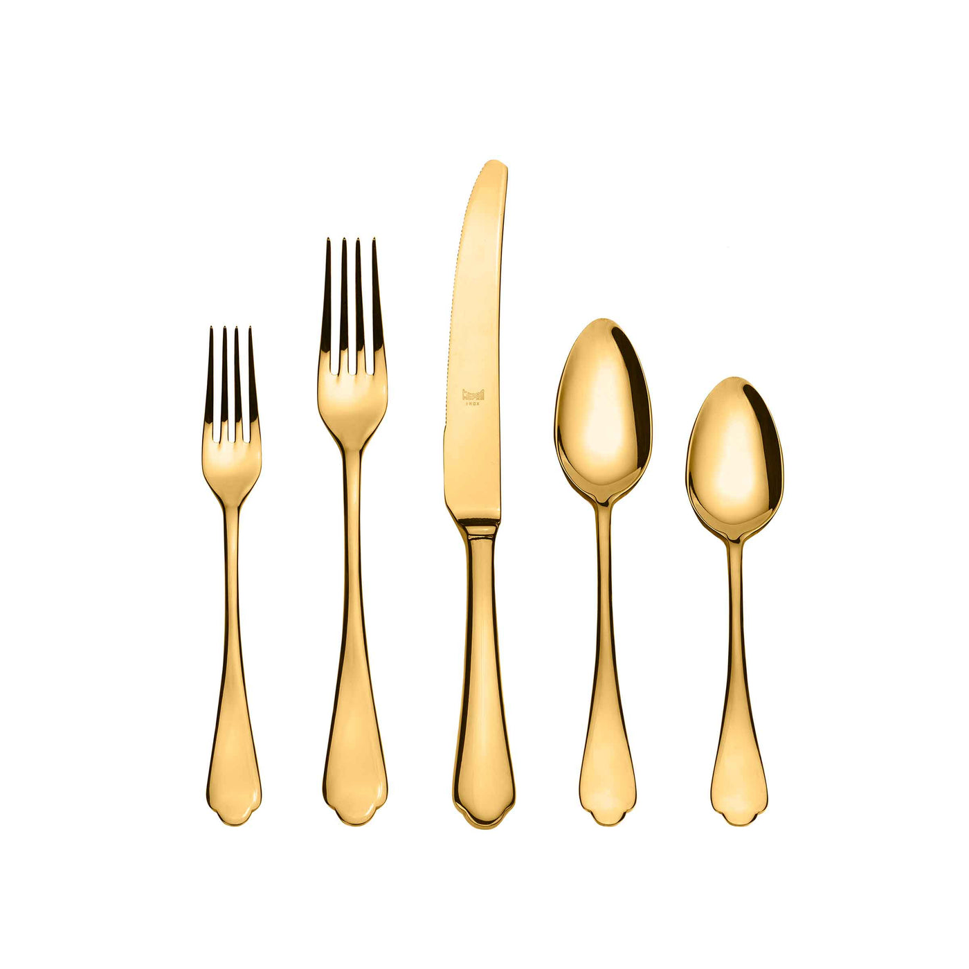 Fabriqué en acier inoxydable 18/10 de la plus haute qualité, cet ensemble d'argenterie est revêtu d'une finition PVD, développée par la NASA, pour une durabilité accrue.