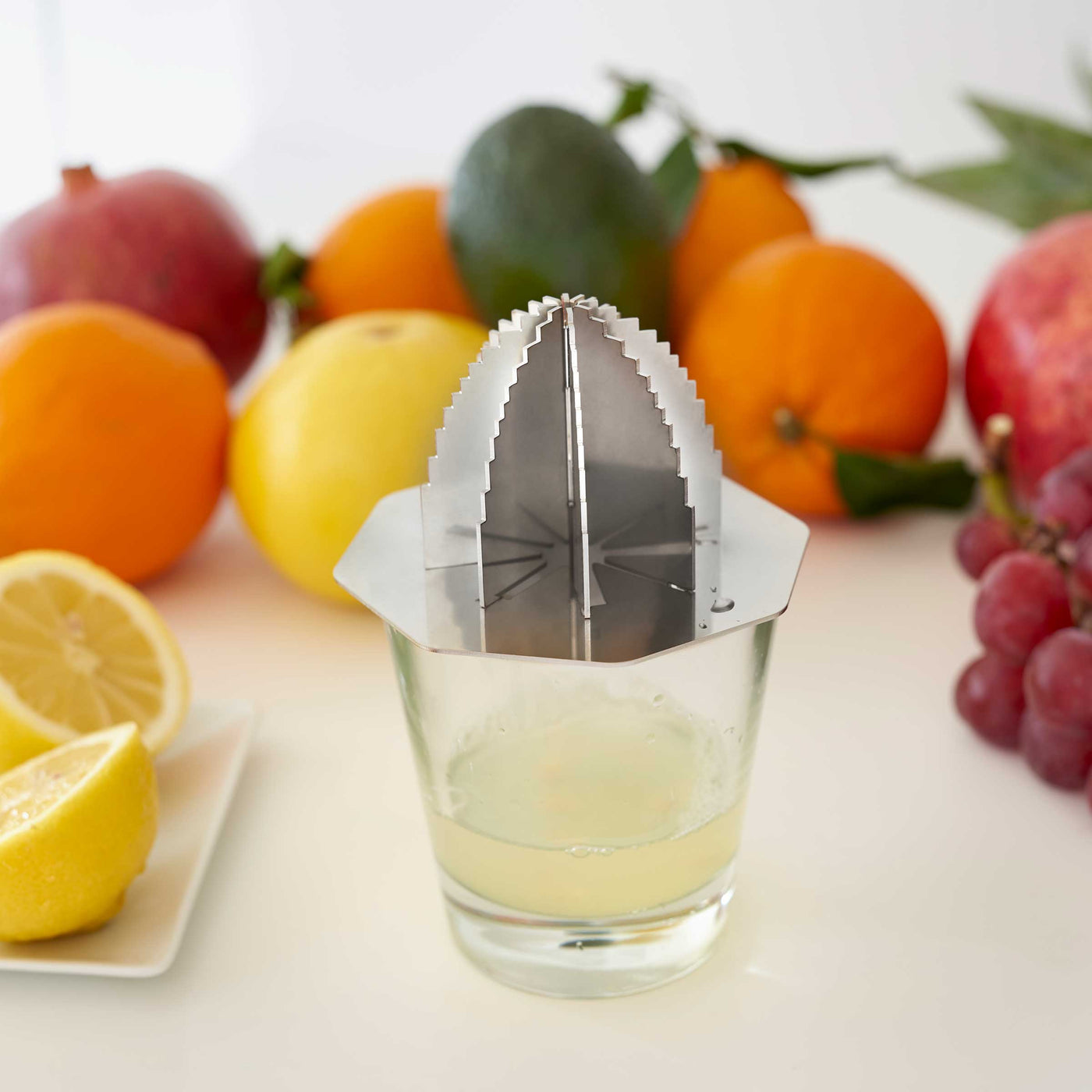 Ce presse-agrumes en acier découpé au laser est modulaire et livré en kit pour un assemblage facile.