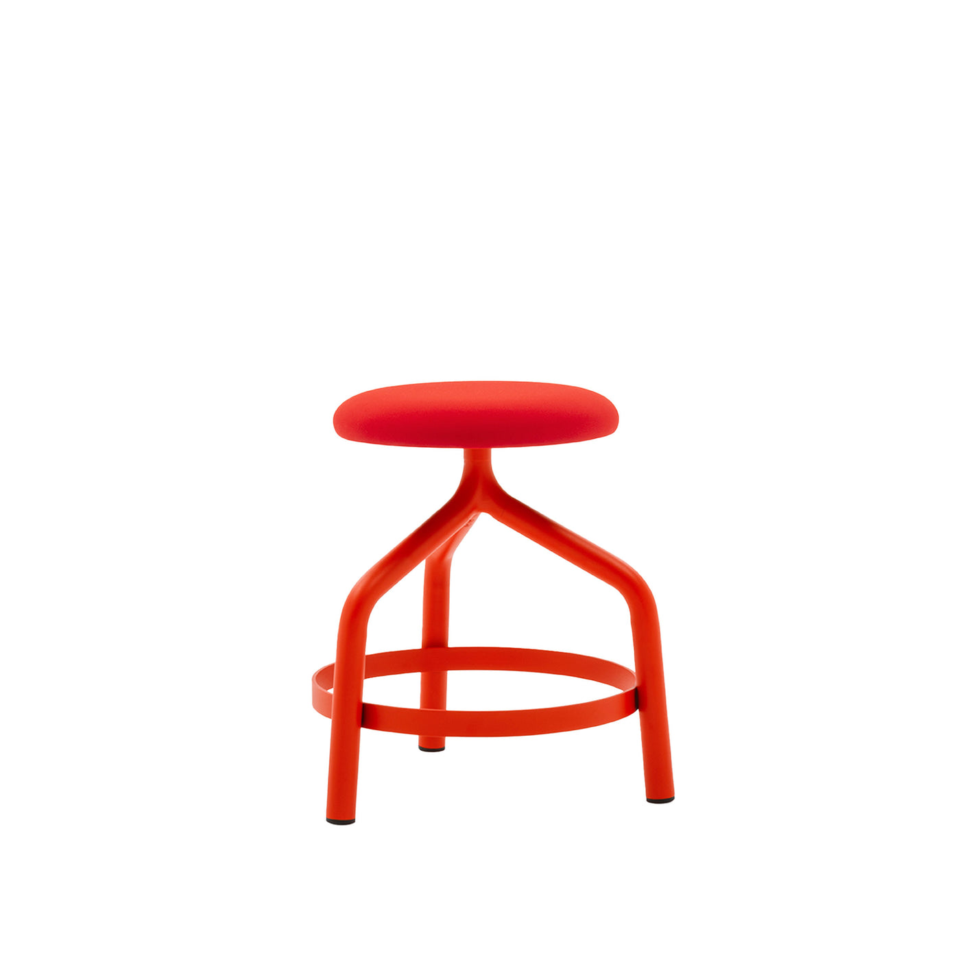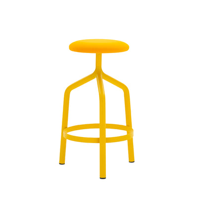 Le tabouret JOE, conçu par Viganò et fabriqué en Italie, fait partie d'une famille de tabourets en métal inspirés par les principes du design industriel italien.