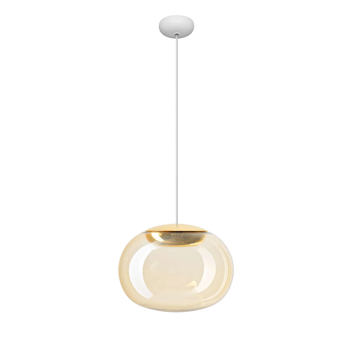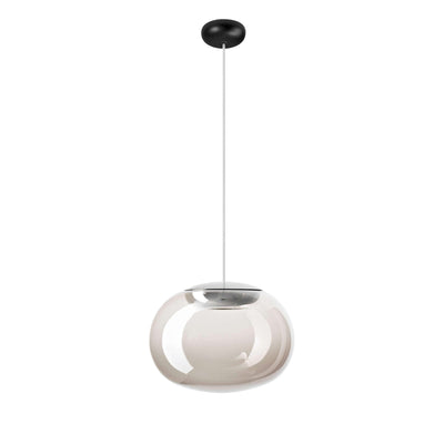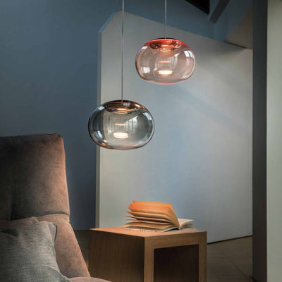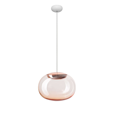 La Mariée est un luminaire présentant une sphère en verre soufflé éthérée avec des tons élégants de cuivre, or ou gris fumé. Dotée d'une forme légèrement ovale et d'une source lumineuse cachée, cette lampe suspendue raffinée et élégante diffuse une lumière d'ambiance douce qui crée un jeu de reflets. 220-240 V topLED 9W. 3000k.