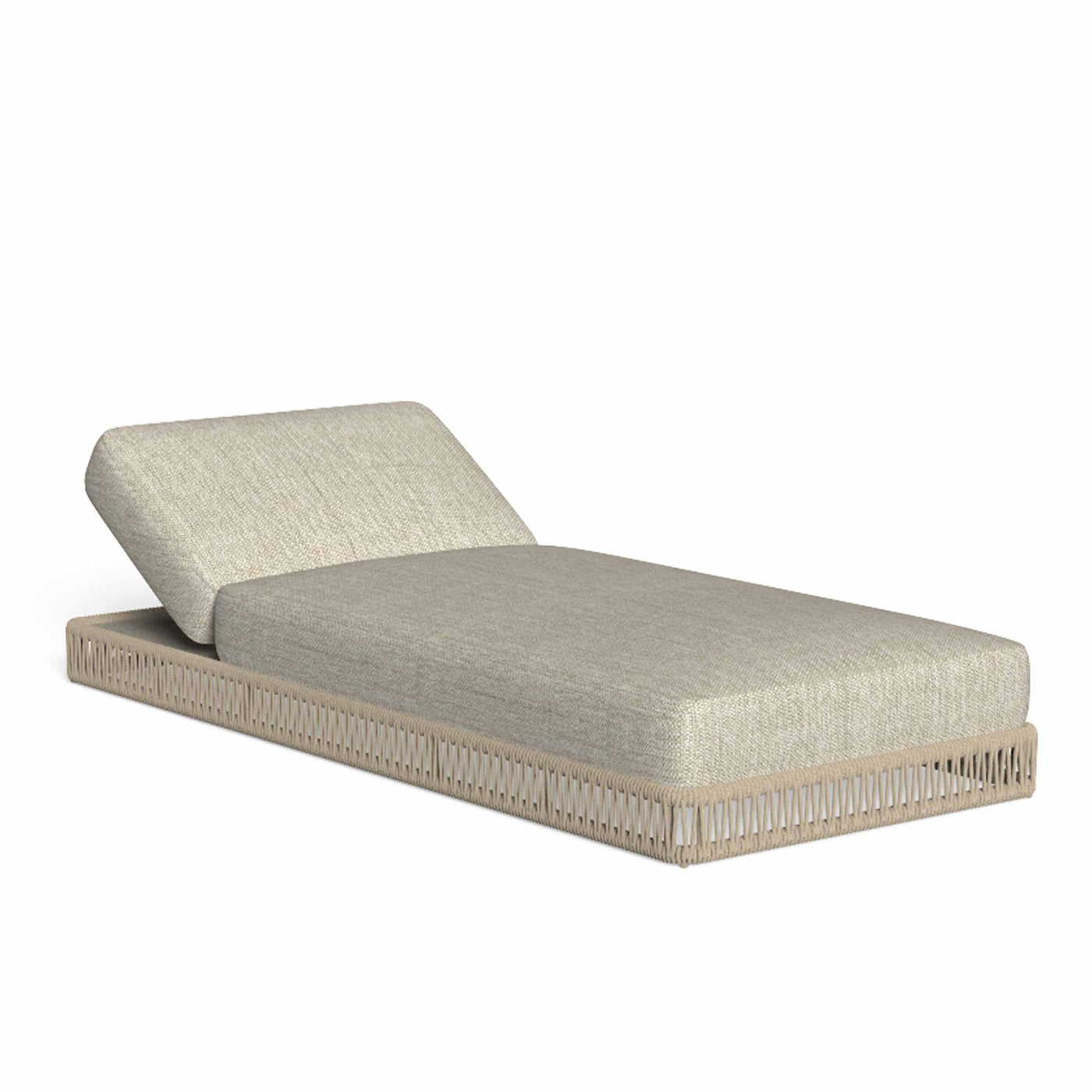 Ce transat d'extérieur de luxe présente une structure de base tubulaire finie avec une corde tressée décorative et des coussins doux pour une détente ultime par temps estival.