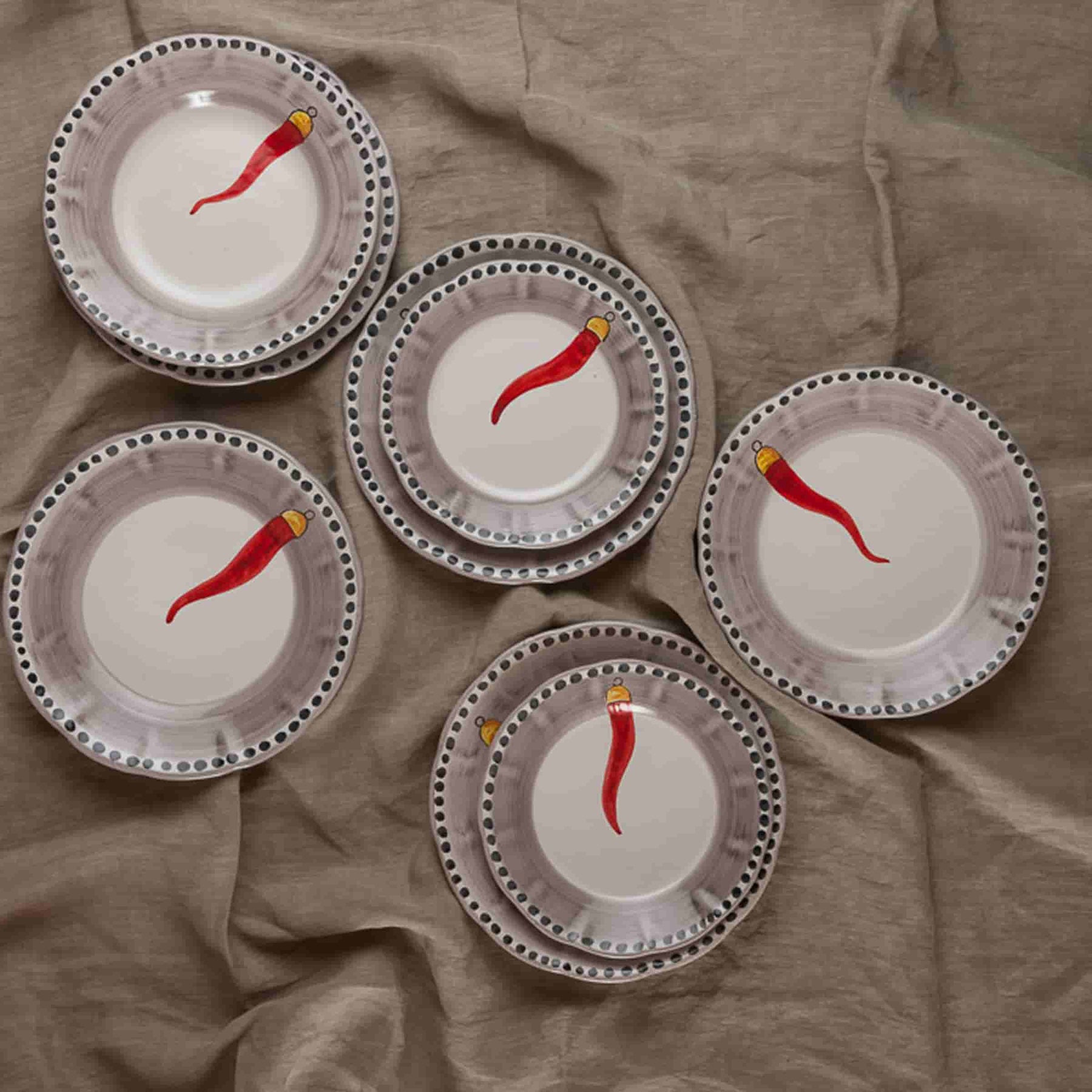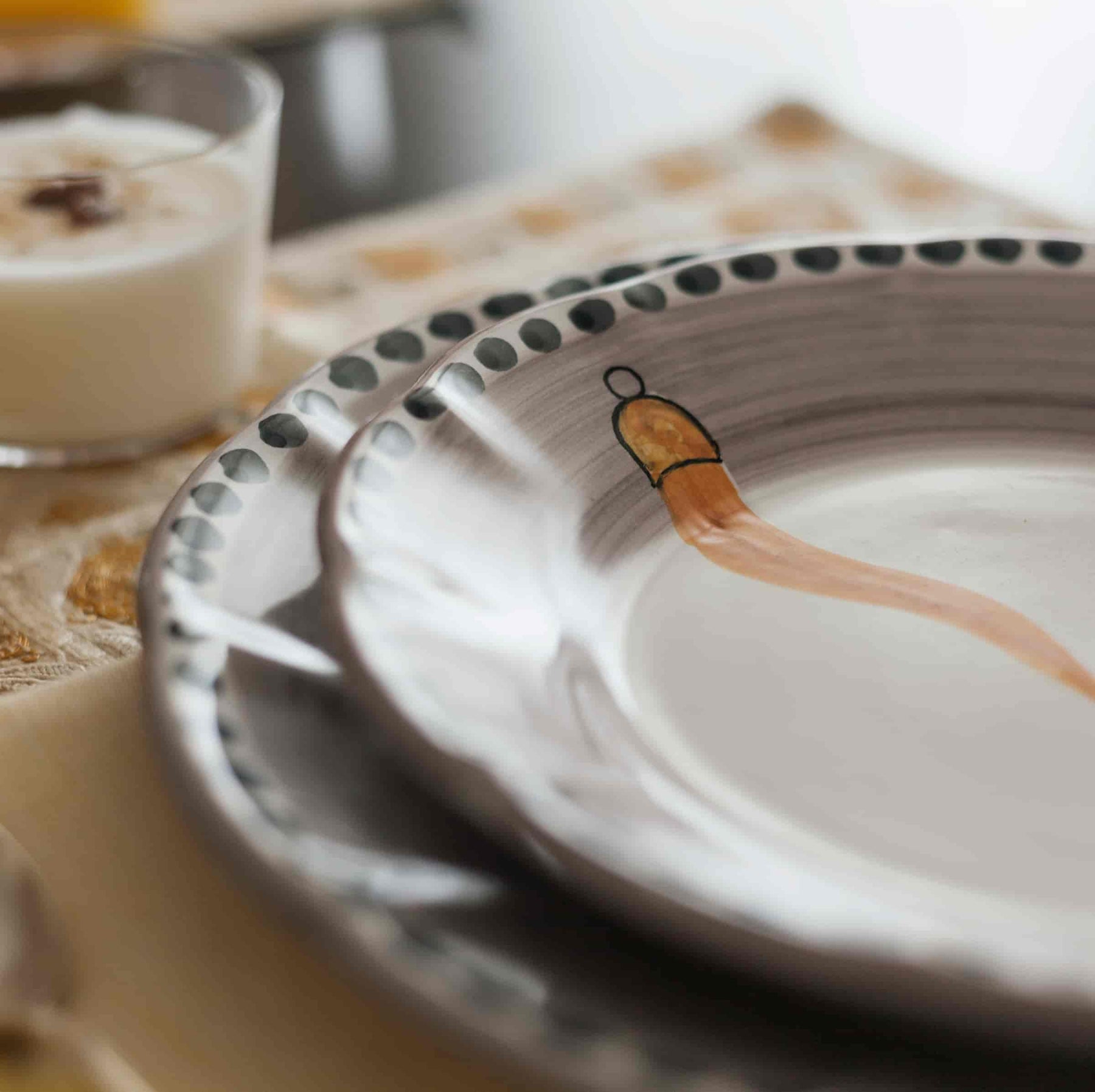 Originario di un piccolo villaggio sulla Costiera Amalfitana rinomato in tutto il mondo per le sue ceramiche dipinte a mano di alta qualità, questo pezzo unico di stoviglieria combina l'artigianato tradizionale con il simbolismo culturale. Il marchio Waiting for The Bus integra magistralmente il corno iconico, conosciuto localmente come “cornetto” o “o’ curniciello,” ritenuto capace di scacciare il male, nelle loro collezioni di ceramica, incluso il popolare set di stoviglie “o’ curniciello”. Scopri l'intera Collezione Vietri.