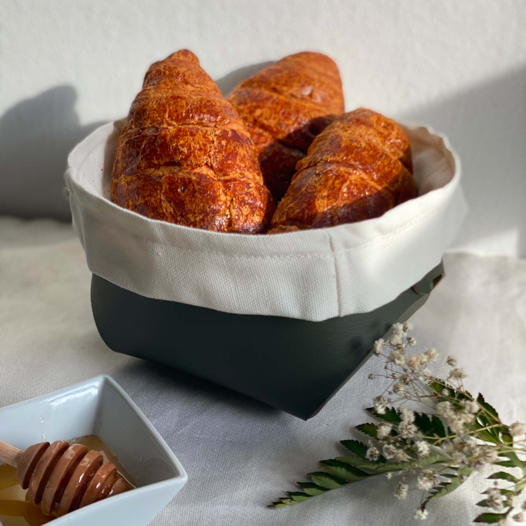 Il CESTINO PER IL PANE, progettato da Ekaterina Borovkova e realizzato in Italia, include una borsa di cotone rimovibile e aggiunge eleganza a qualsiasi esperienza culinaria.