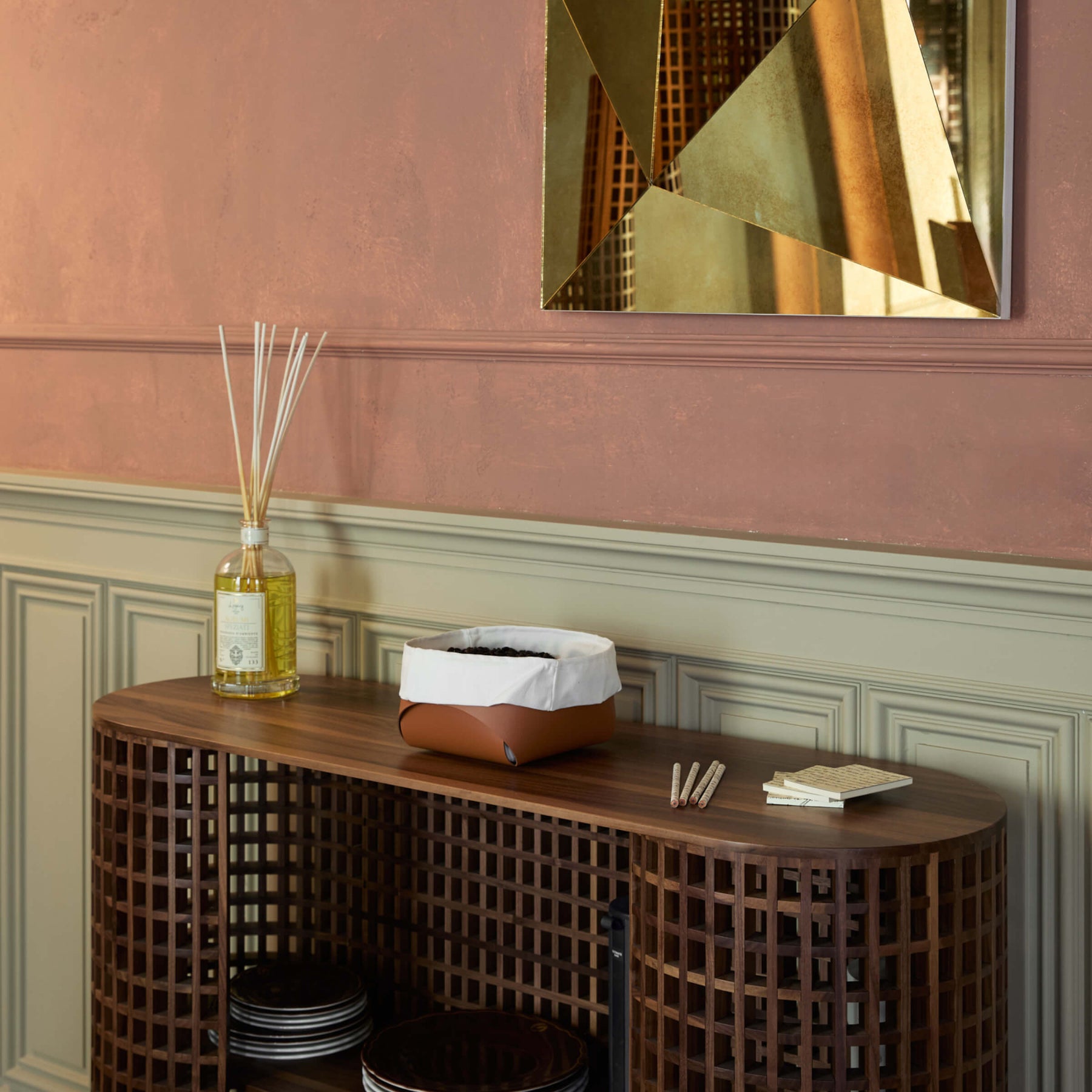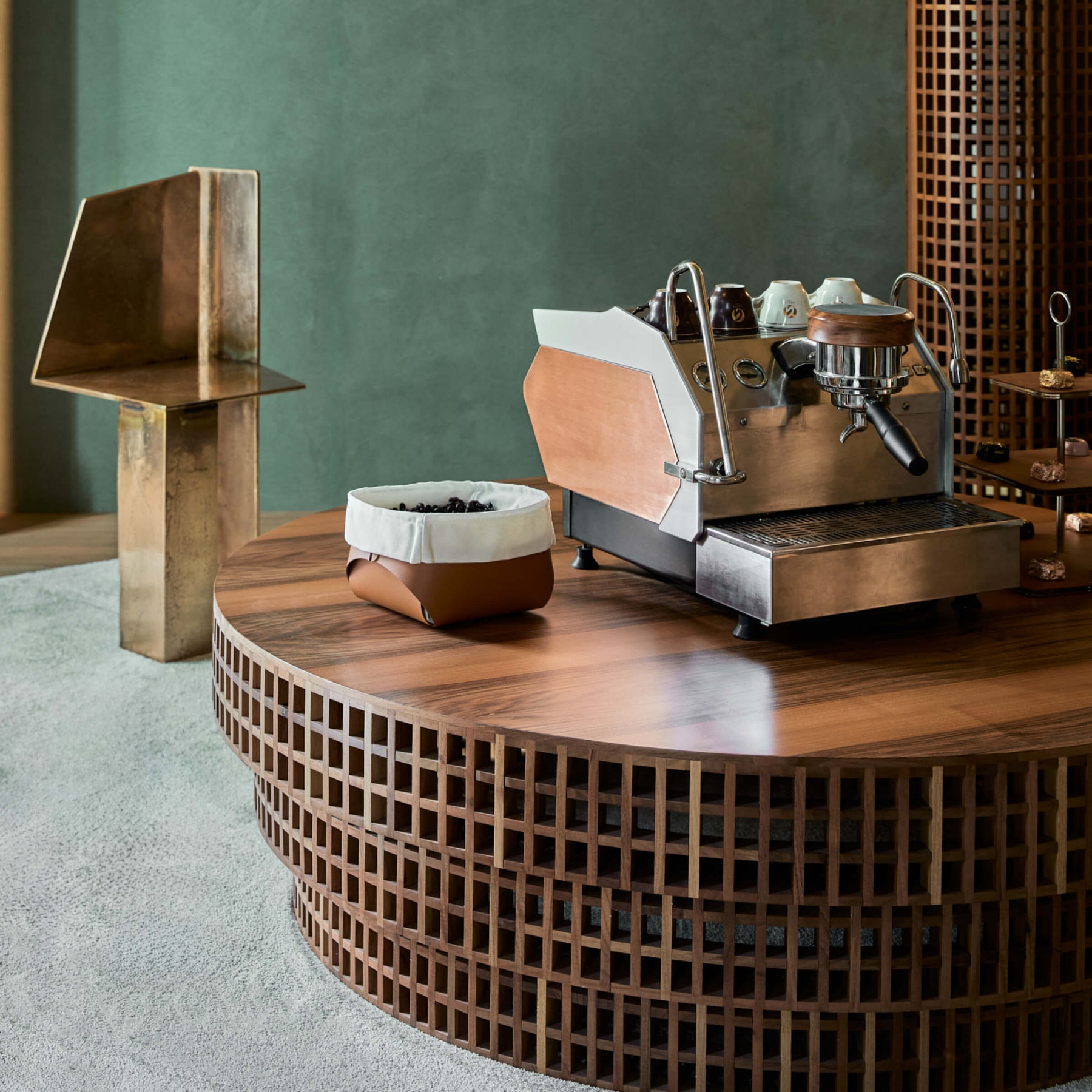 Sottolineando la sinestesia, questo cestino coinvolge i sensi della vista, del tatto e dell'olfatto, con le sue forme morbide, i colori emozionali e il profumo naturale della pelle, creando una connessione memorabile per l'utente.