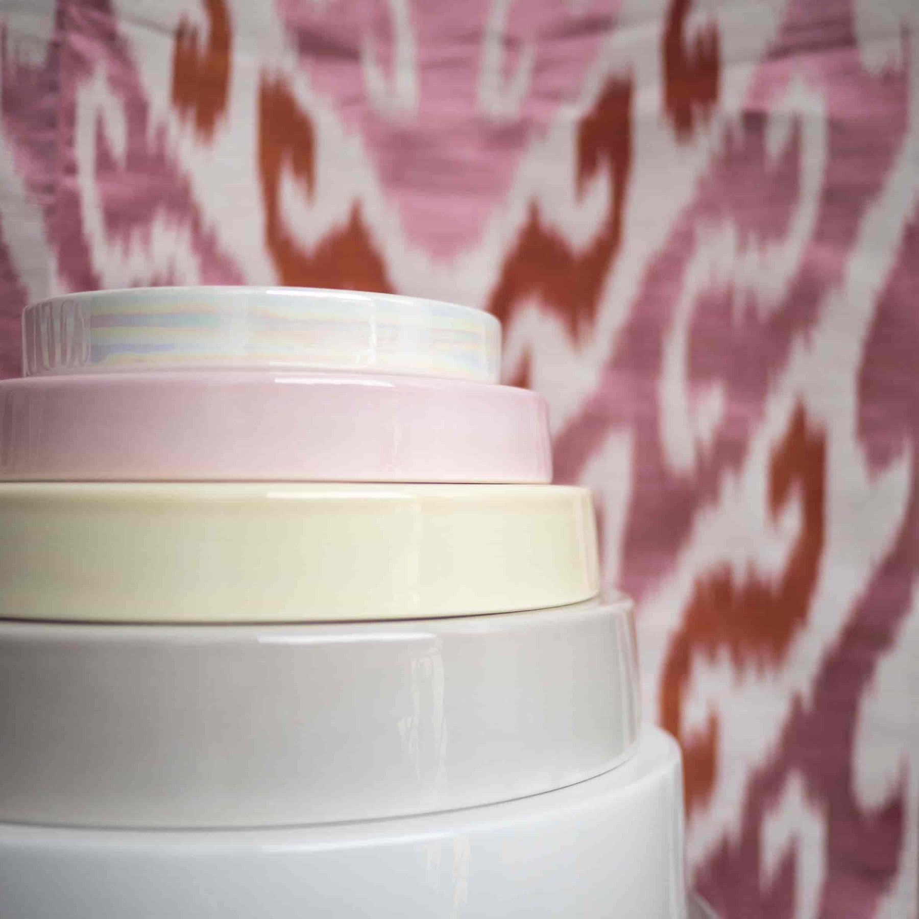 CIRCONVALLAZIONE: Cilindri decorativi in ceramica italiana fatti a mano per un design d'interni moderno. Scopri l'elegante collezione di sei cilindri in ceramica decorati a mano, realizzati in Italia da Geramana Scapellato per Waiting for the Bus.