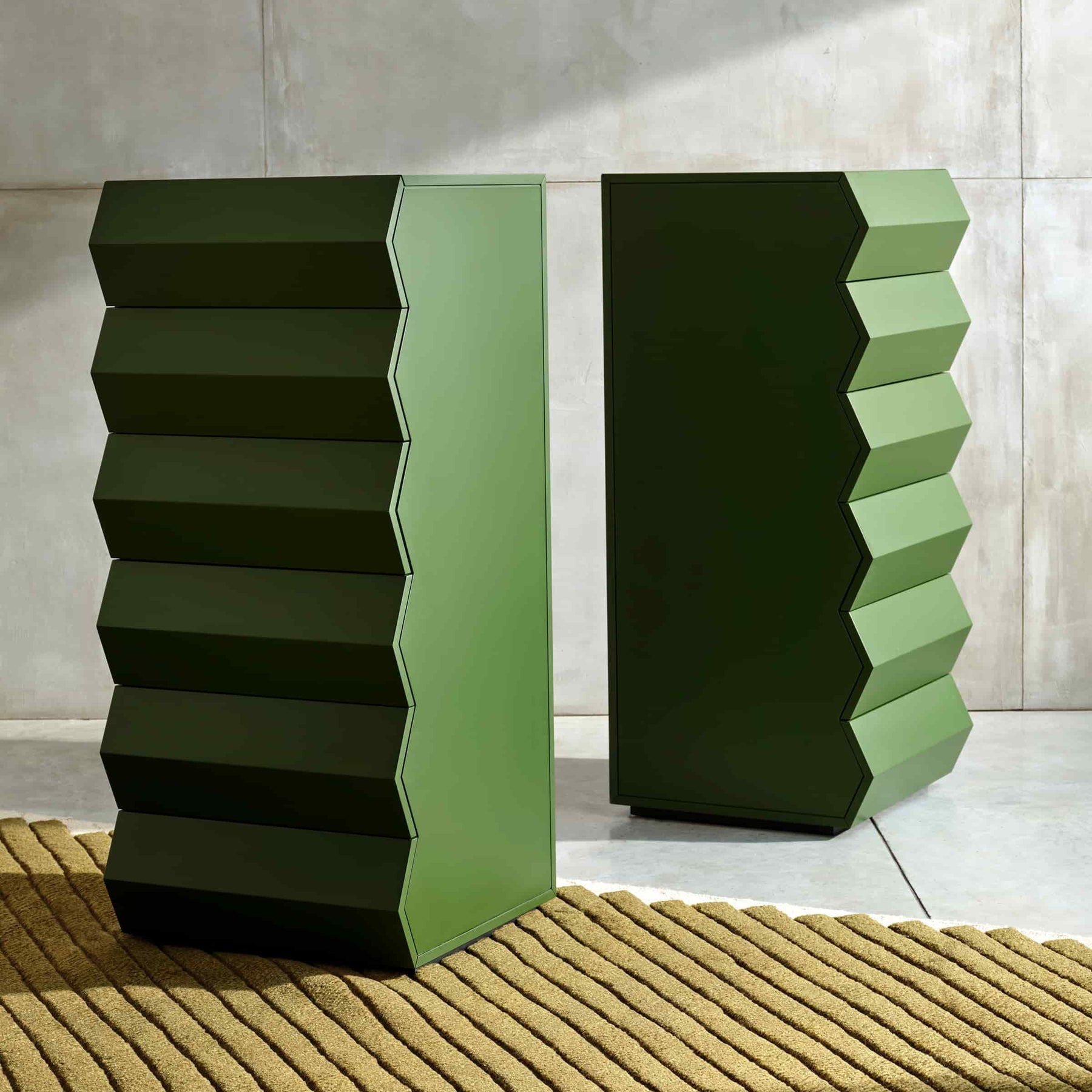 Il comò Z24 si distingue per le sue forme distintive e giocose e per le sue tonalità vivaci, mostrando geometrie sorprendenti e dinamiche. Questo pezzo d'arredamento eccezionale non solo valorizza il tuo arredamento interno, ma segna anche un nuovo capitolo nell'esplorazione del motivo iconico a zig-zag. Perfetto per spazi contemporanei ed eclettici, il comò Z24 è sia funzionale che un pezzo di design per la tua casa. Migliora il tuo spazio abitativo con questa scelta di arredamento artistico oggi stesso!