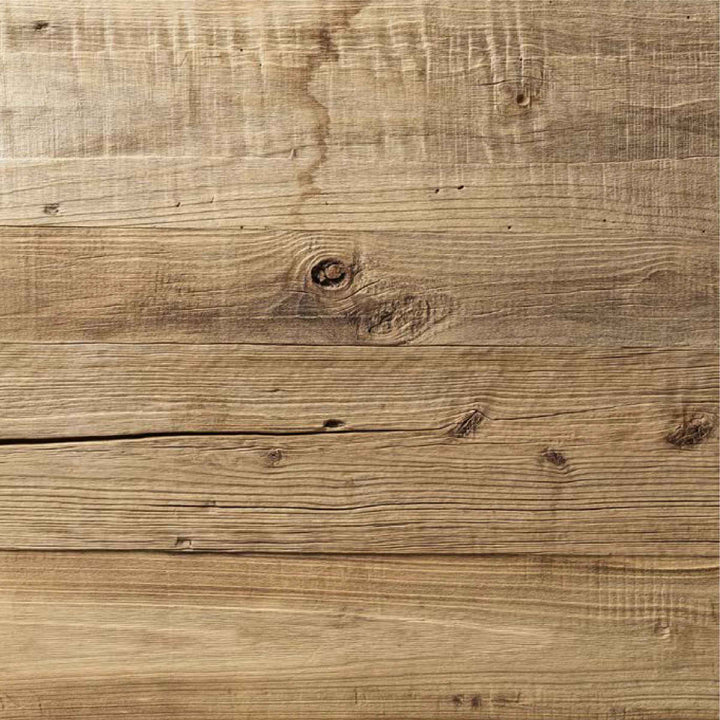 Struttura realizzata in pregiato noce Canaletto bordato in massello. Le ante in legno Ontano mettono in evidenza la tecnica di riqualificazione del legno antico. Scomparti interni in noce completi di ripiani in vetro trasparente. Cerniere Blum®. Guide non presenti.
