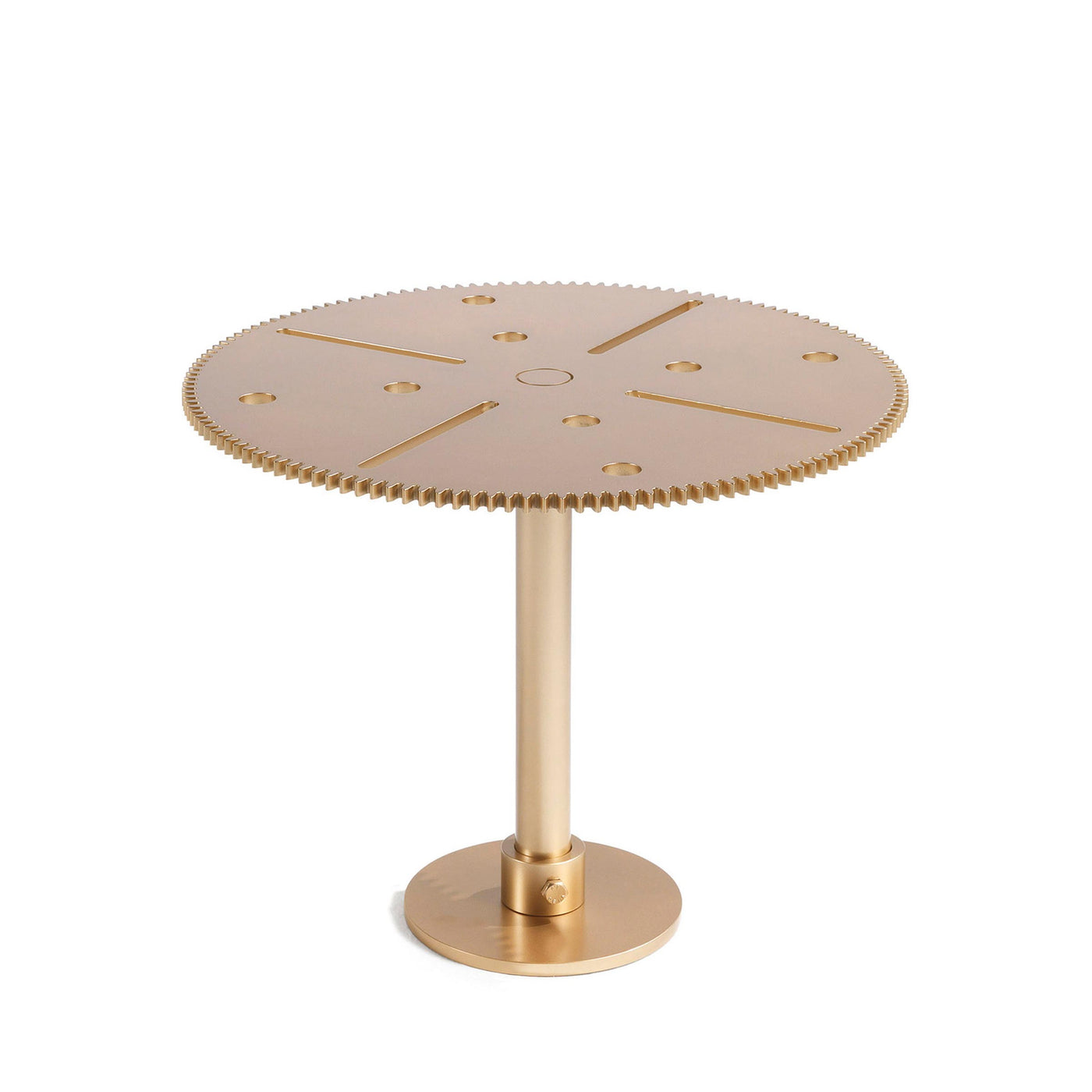 Featuring a design that looks like the gears of a clock, MASEEN A-X is a metal accent table that was designed by Samer Alameen and handmade in Italy.