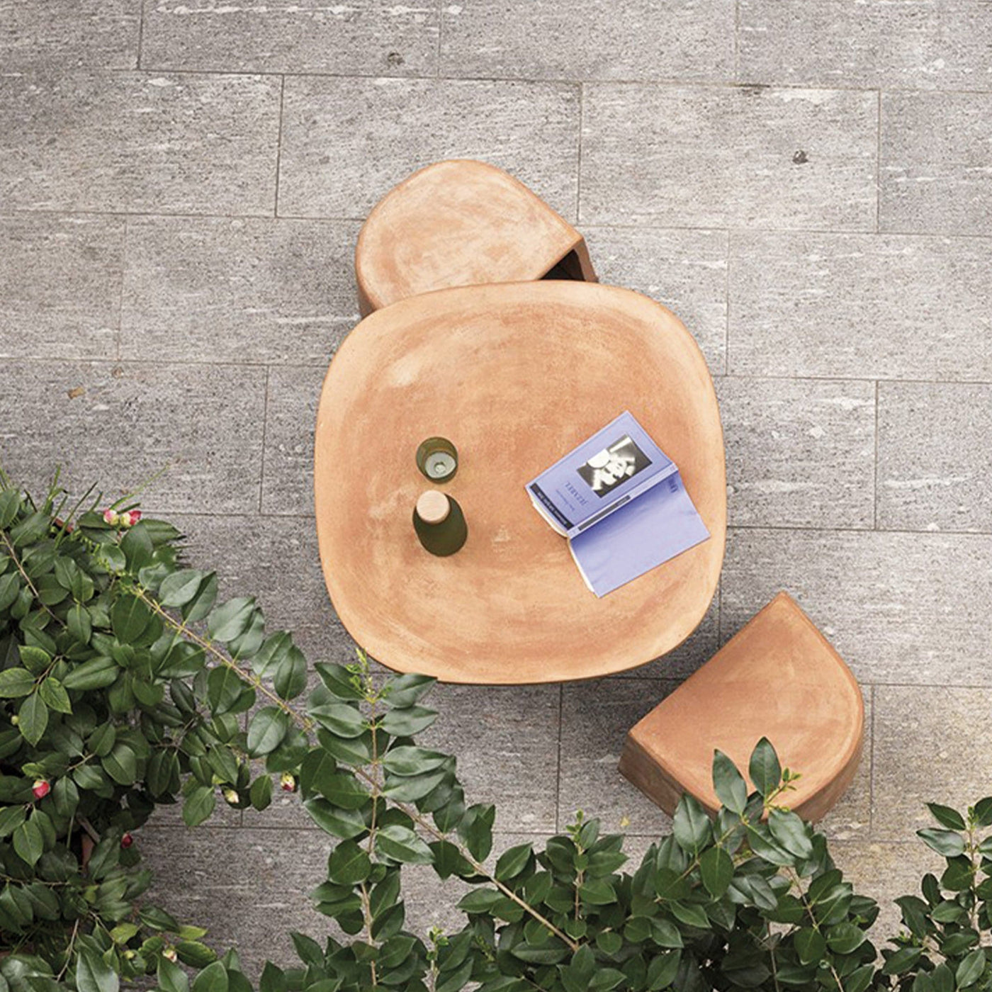 The choice of a natural material such as terracotta inspired the designer to search for an object that could be one with nature and that would acquire character by being exposed to the elements over time.