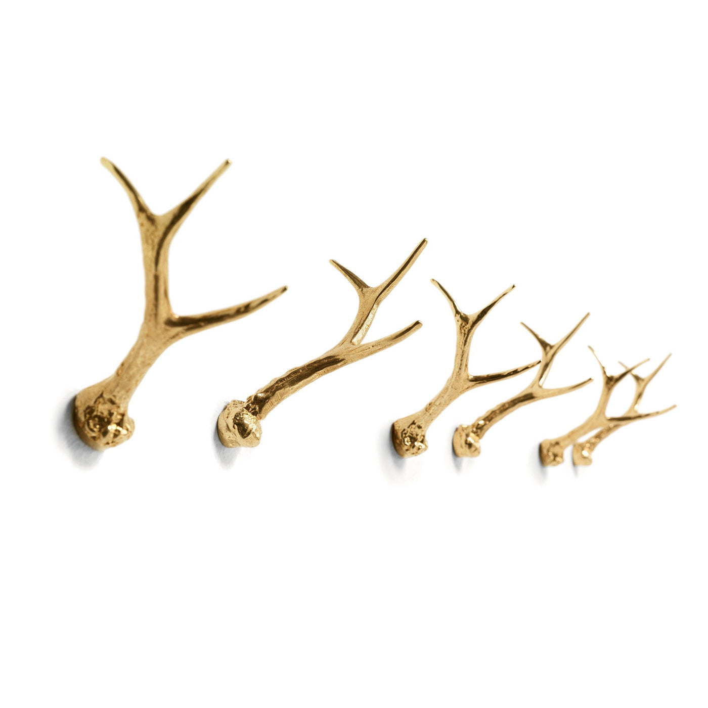 Hubertus is a pair of wall-mounted clothes hanger horns in brass casting in a polished finish and were designed by Filippo Mambretti in 2014.